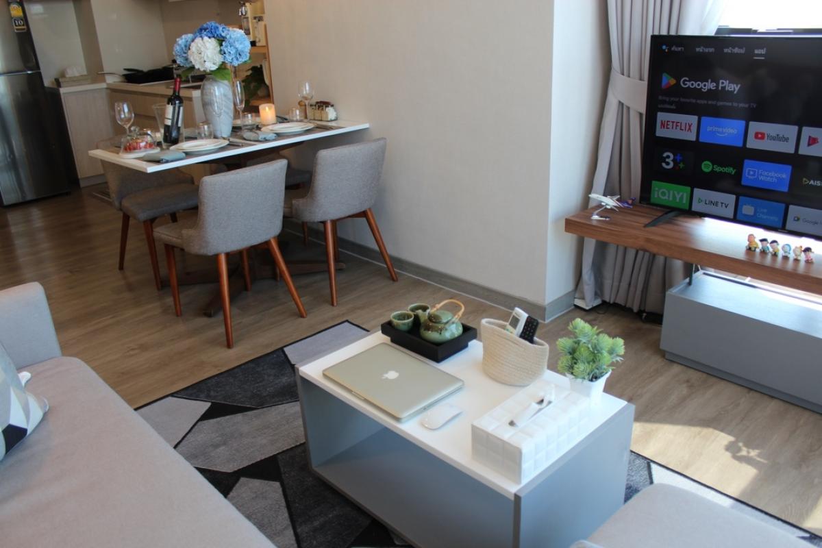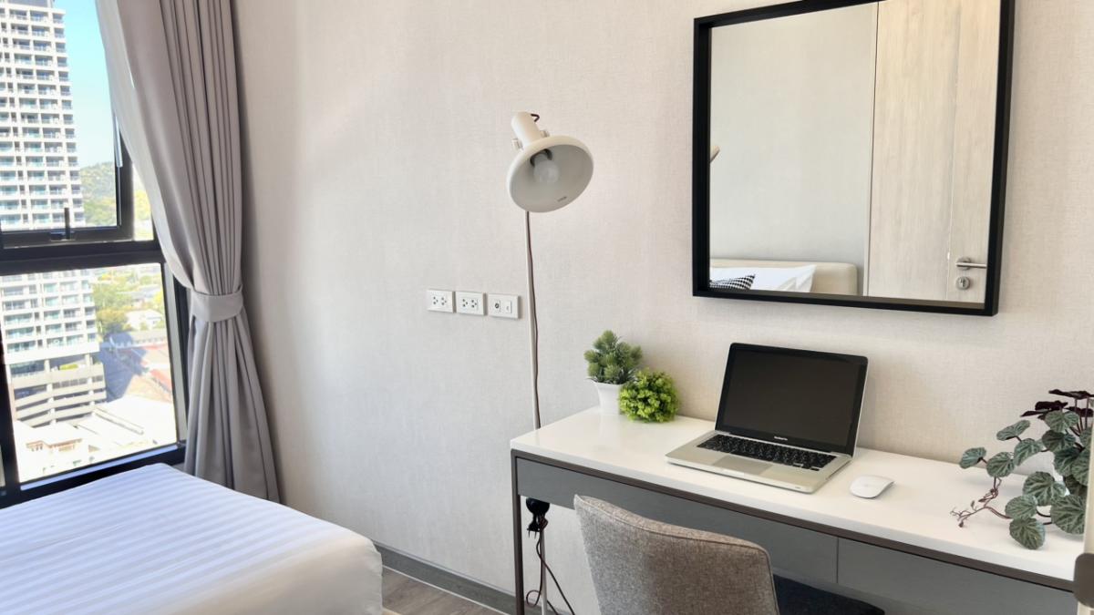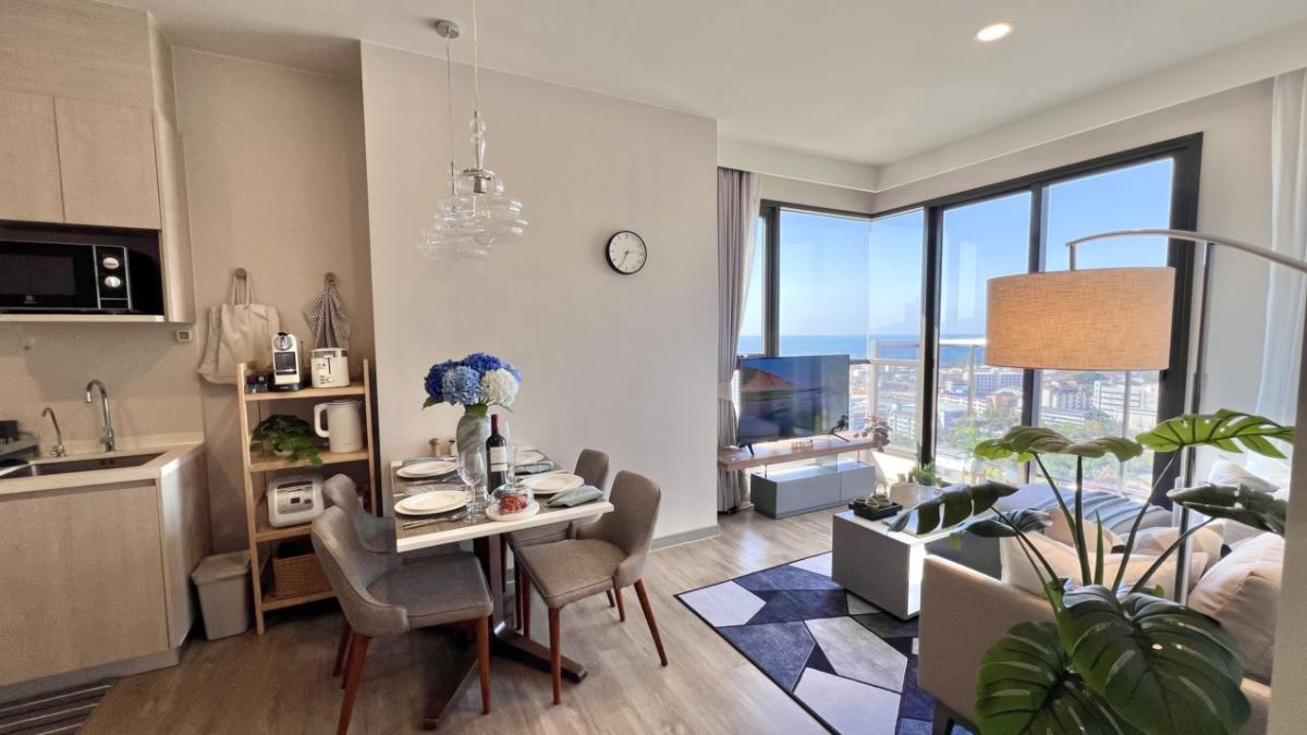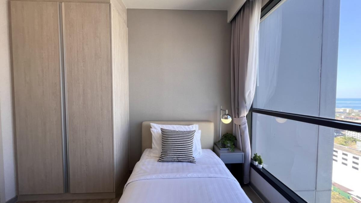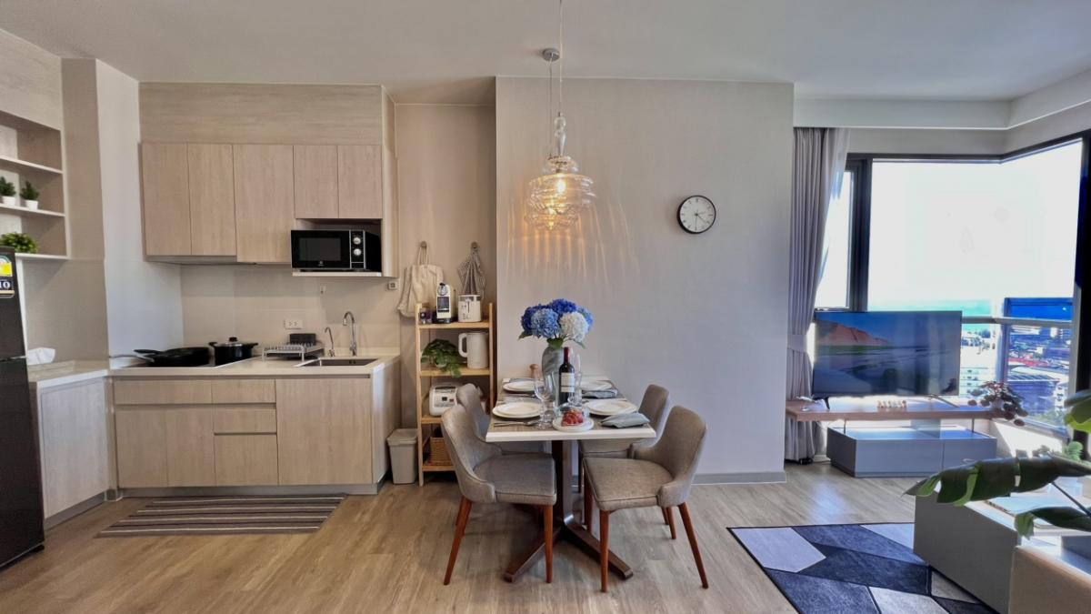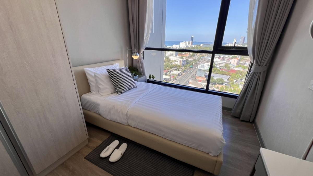 Room for RENT , Ready to move in Keen Centre Sriracha in the heart of Sriracha 67 Sq.M. , 18th Floor, Fully Furnished, Stunning Sea&City View ,Corner Unit, wall is not adjacent to the other room. Soundproof windows. •2 Bedrooms, en-suite bathroom with bath tub and shower zone •Spacious Kitchen with Dining Table for 4 ppl and Cozy Living room with balcony •Suit for a Family ,Couple or Single with Highly Privacy Life. •Applicable for Fibre Optic High-Speed Internet •1 Parking privileges for 4-wheel car A/C in both bedrooms and living room. Built-in Kitchen , Hob , hood , Microwave , Refrigerator. Dining table 4-seat , Chairs , Sofa 3-seater with extra stool , Coffee table , Floor Lamp , TV 50" Master bedroom; King size bed , Dressing table , Stool , Wardrobe , Floor Lamp , Reading Lamp, En-suite bathroom with bath tub and Shower zone, Eri toileto Bedroom; Twin size bed *Changeable to queen size bed, Dressing table , Chair , Wardrobe, Floor Lamp, Reading Lamp Rain Shower bathroom , Water-heater , Eri toileto Washing machine,Dryer, Hob electric stove - External venting Hood , Toaster, Rice Cooker, Kettle , Facilities; G Floor: Lobby/Day Lounge/Kids Play Room/Drivers Room/Zen Garden/Mail Room/ Parking Floor 2-7: IndoorParking Lot, EV Charger, Motorcycle Parking Floor 8: Laundry Room/Theatre Room/Meeting Room/Tea Room/Gym(Fitness Room)/Yoga Room/Sport Lounge/Game Room/Garden Floor 38: Swimming Pool/Kids Pool/Onsen/Steam/Sauna/Rooftop Garden Near by places; Robinson Mall (Just opposite) Central Si Racha Mall 2.5km Phyathai Hospital 1.4km Samitivej Hospital Somdej Hospital Assumption College Darasamutr School Rate and terms; THB40,000/month for 1year contract THB48,000/month for 3-6 months contract *THB55,000/month for 1 month contract *All inclusive Water and Electricity charge only for 1 month contract Please contact: Mr.Dean Contact number ติดต่อ คุณดีน Contact number WhatApp/Line : Contact number
