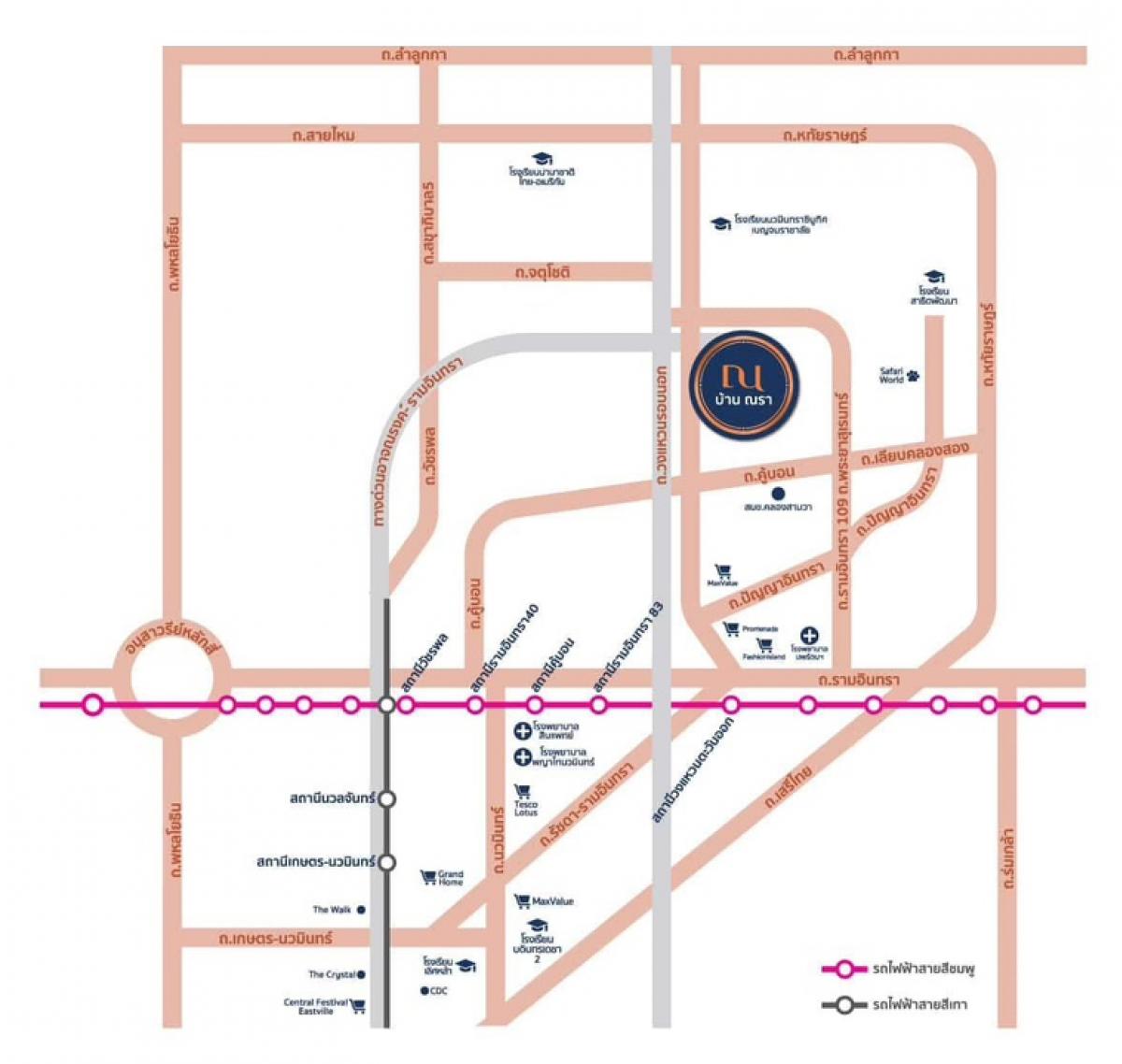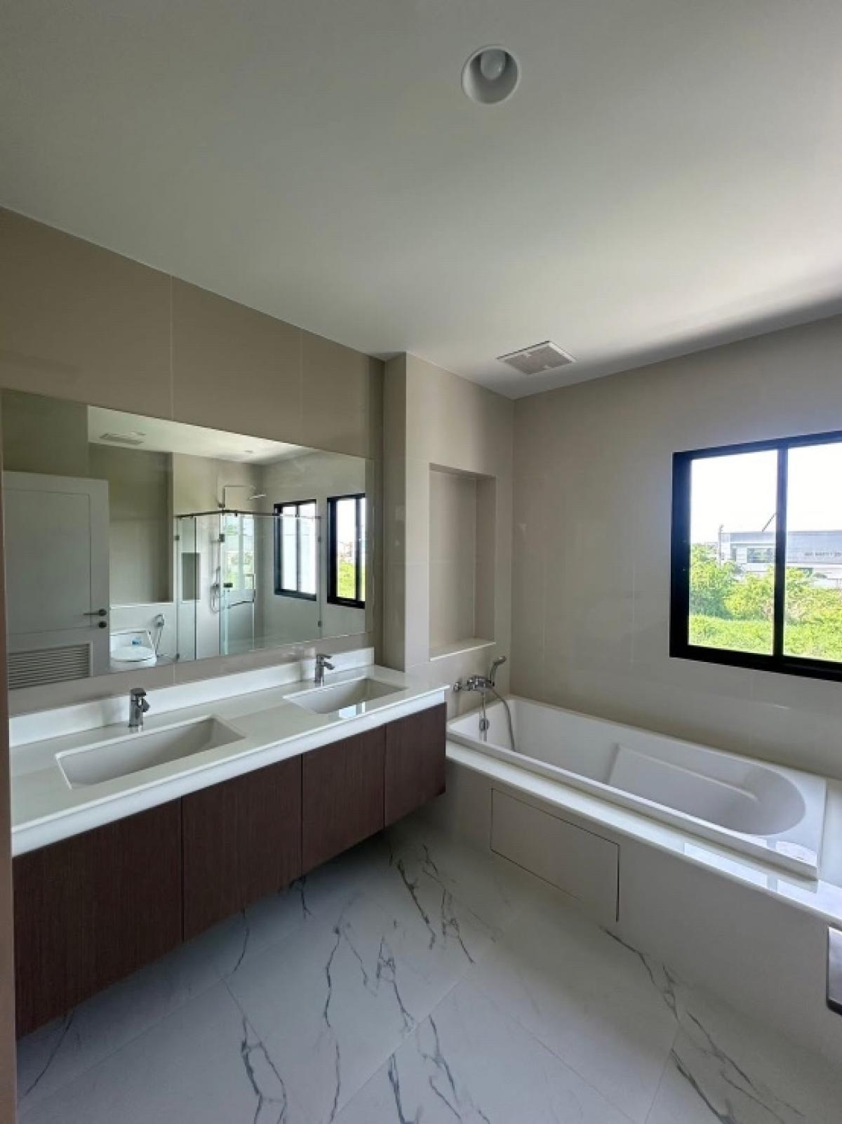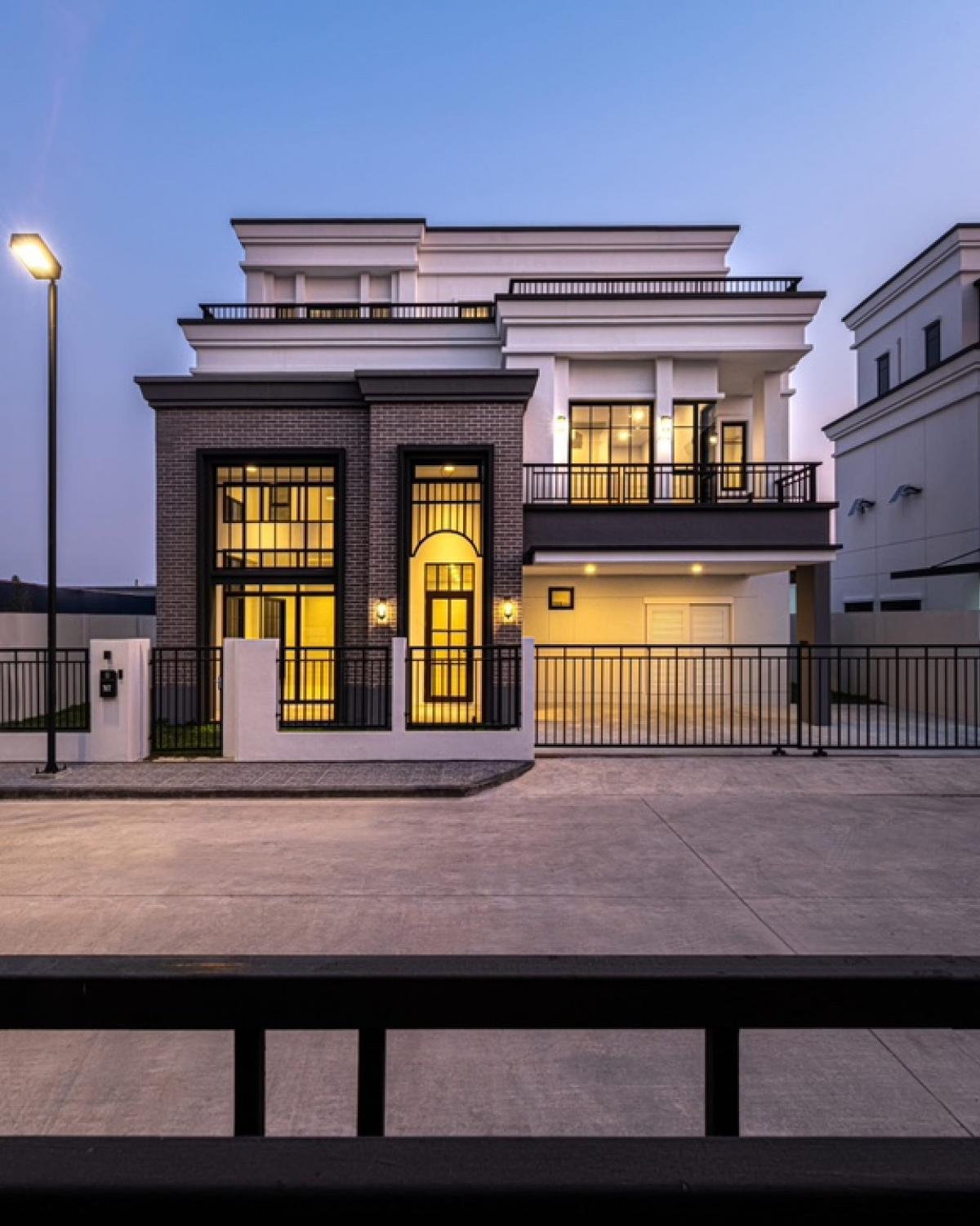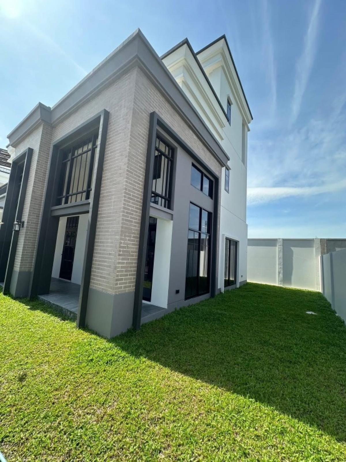 Nara Wongwaen Ramintra House . 3-storey detached house, ready to move in Area 68 sq.w., usable area 338 sq.m. 5 bedrooms, 4 bathrooms, 3 parking spaces . - Brick and plaster throughout the house* - Do