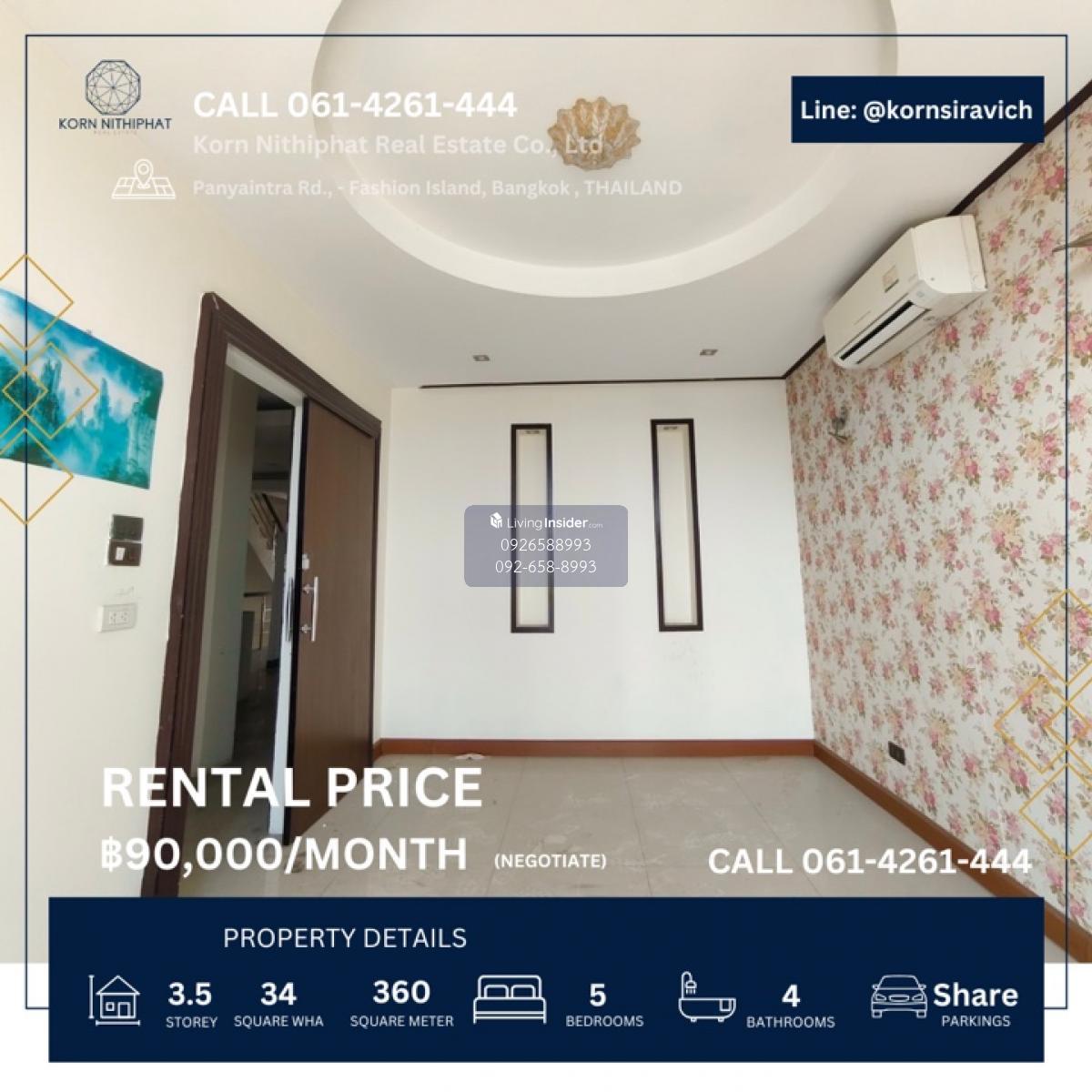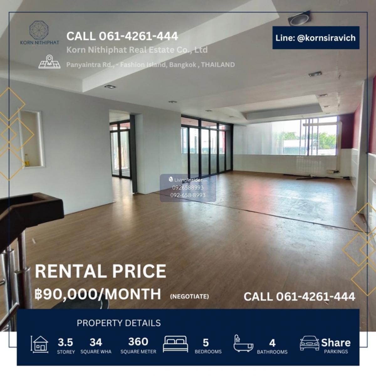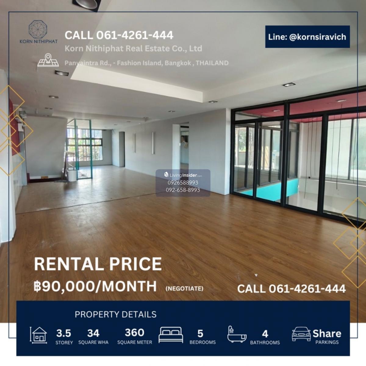 🔘 For rent, commercial building, Panya Intra Near Fashion Island shopping mall 🛍️🛒, Ram Intra 🩺🧬🫀🫁🦷👨🏻‍⚕️🔬💆🏻‍♂️🧖🏻‍♀️🌸💅🏻🍱🍜 __💥💥Rental price 90,000 baht / month💥💥__ Call Contact number | 𝗟𝗶𝗻𝗲: @𝗸𝗼𝗿𝗻𝘀𝗶𝗿𝗮𝘃