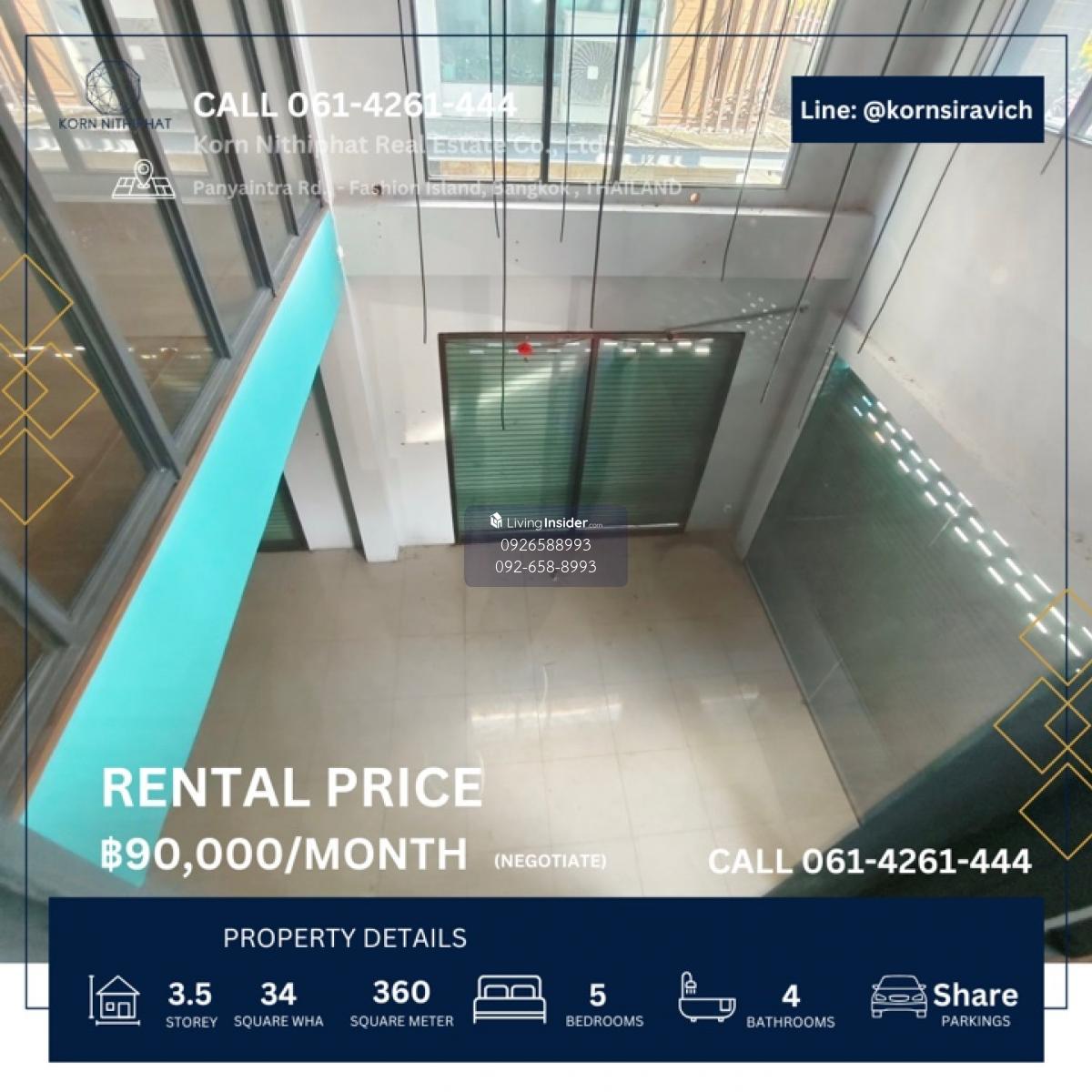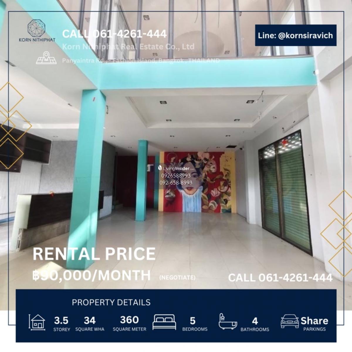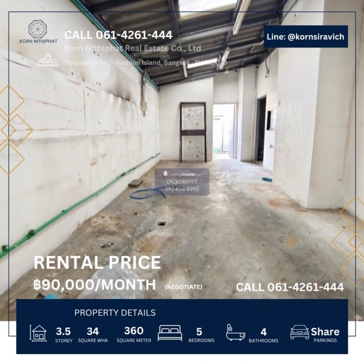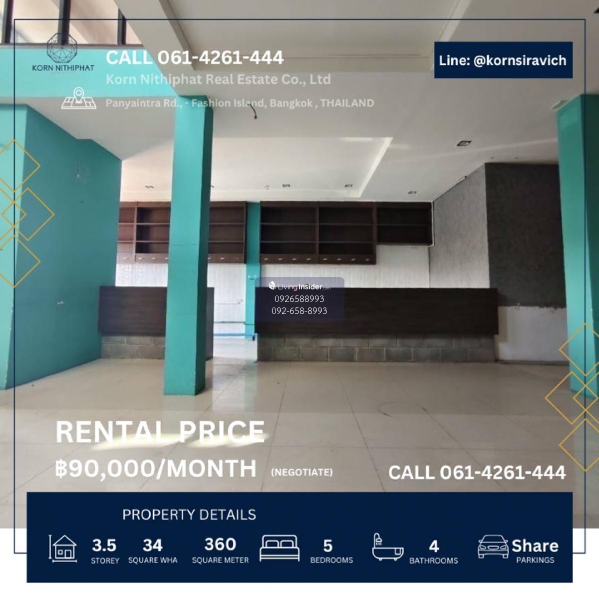 🔘 For rent, commercial building, Panya Intra near Fashion Island shopping mall 🛍️🛒, Ram Intra 🩺🧬🫀🫁🦷👨🏻‍⚕️🔬💆🏻‍♂️🧖🏻‍♀️🌸💅🏻🍱🍜 __💥💥Rental price 90,000 baht / month 💥💥__ Call Contact number | 𝗟𝗶𝗻𝗲: @𝗸𝗼𝗿𝗻𝘀𝗶𝗿𝗮