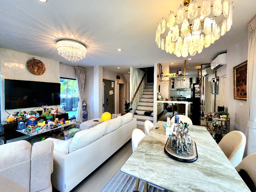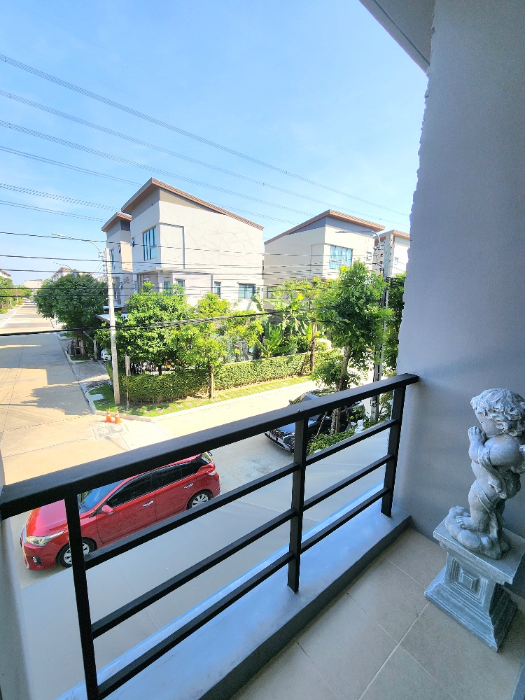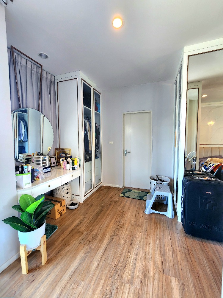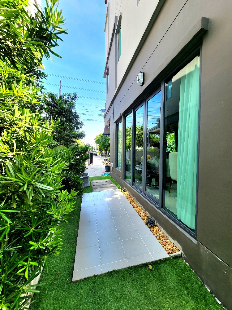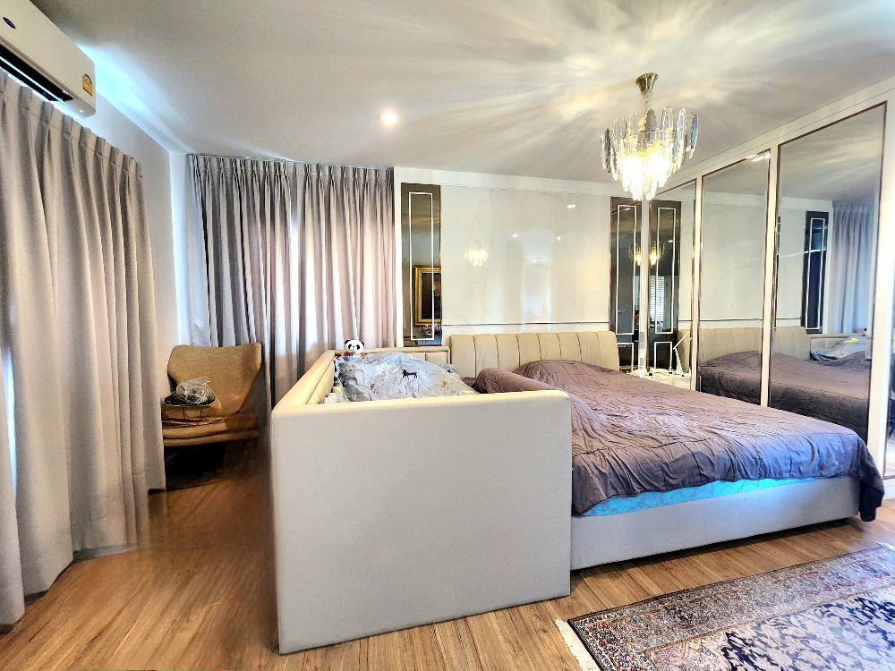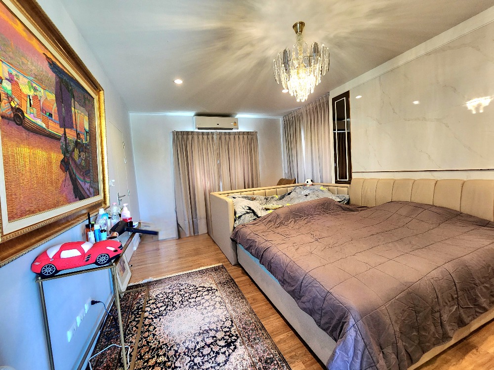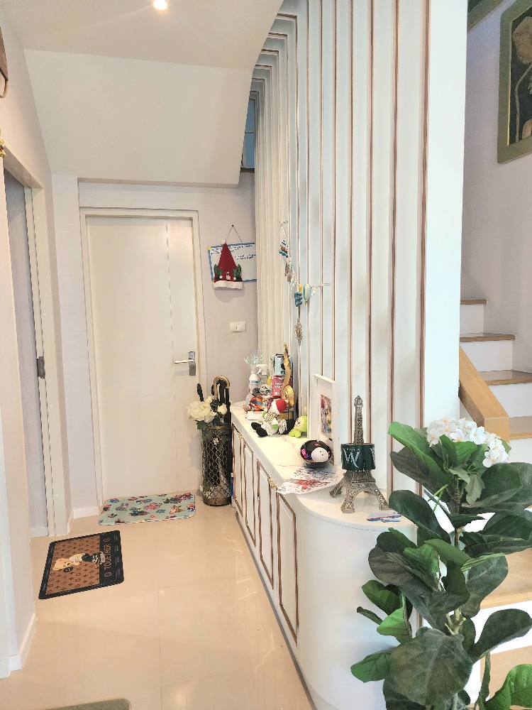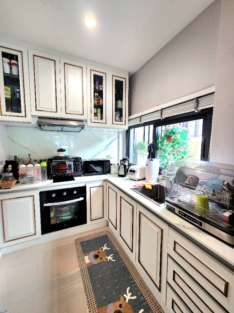 • 3-storey twin house, area 38.7 sq.w., usable area 218 sq.m. • Parking for 3 cars, the front of the house faces east, opposite is a garden • 4 bedrooms, 4 bathrooms, there is a bedroom downstairs for the elderly • Master room has a walk-in closet, very well-proportioned With private bathroom, bathtub • 5 air conditioners, wallpaper on the 1st and 2nd floors, with good quality curtains throughout the house • Very beautiful house, decorated with built-in furniture, premium grade, beautiful, luxurious • Beautiful built-in kitchen, there is an outdoor kitchen at the back of the house, with a roof already installed Complete water pump + water tank • The ground floor is granite Upper floor is laminate • Project location - Kanchanaphisek Road 23, Saphan Sung Subdistrict, Saphan Sung District, Bangkok 10240 • Project facilities - Fitness - Swimming pool with salt system - Large public park, playground - 24-hour security guard - Access Card system for entering and exiting the project (Easy Pass) - CCTV system at the entrance and exit of the project • Convenient transportation - New Krungthep Kreetha Road - Motorway - Suvarnabhumi Airport - Kanchanaphisek Road - Airport Link Ban Thap Chang - Kanchanaphisek Ring Road - Pracham Ratthaya Expressway • Nearby important places - Suvarnabhumi Airport - Little Walk Krungthep Kreetha - The night center - Marketplace Krungthep Kreetha - Triam Udom Suksa Nomklao School - Sarasas Witaed Romklao School For rent 38,000.- / month, 1 year contract, 2 months deposit, 1 month advance payment Interested, contact Inquiry Tel&Line Contact number Khun Su