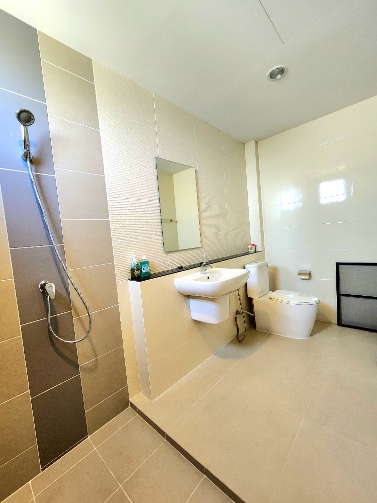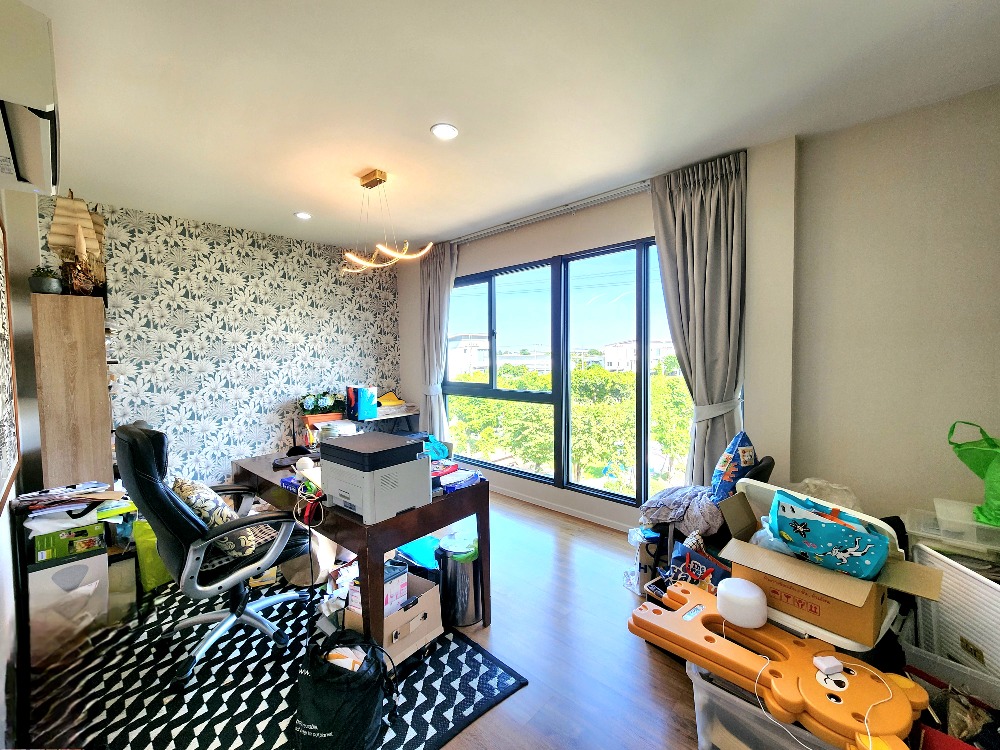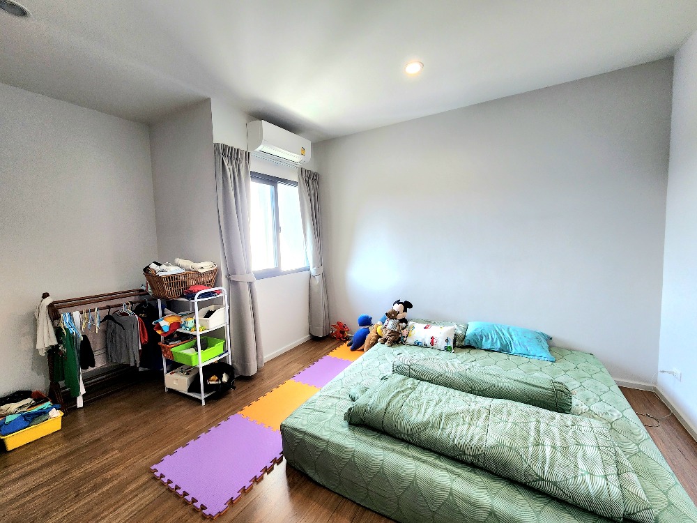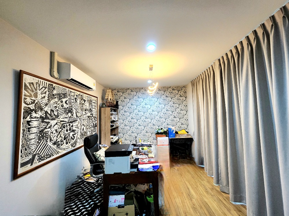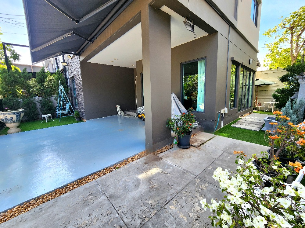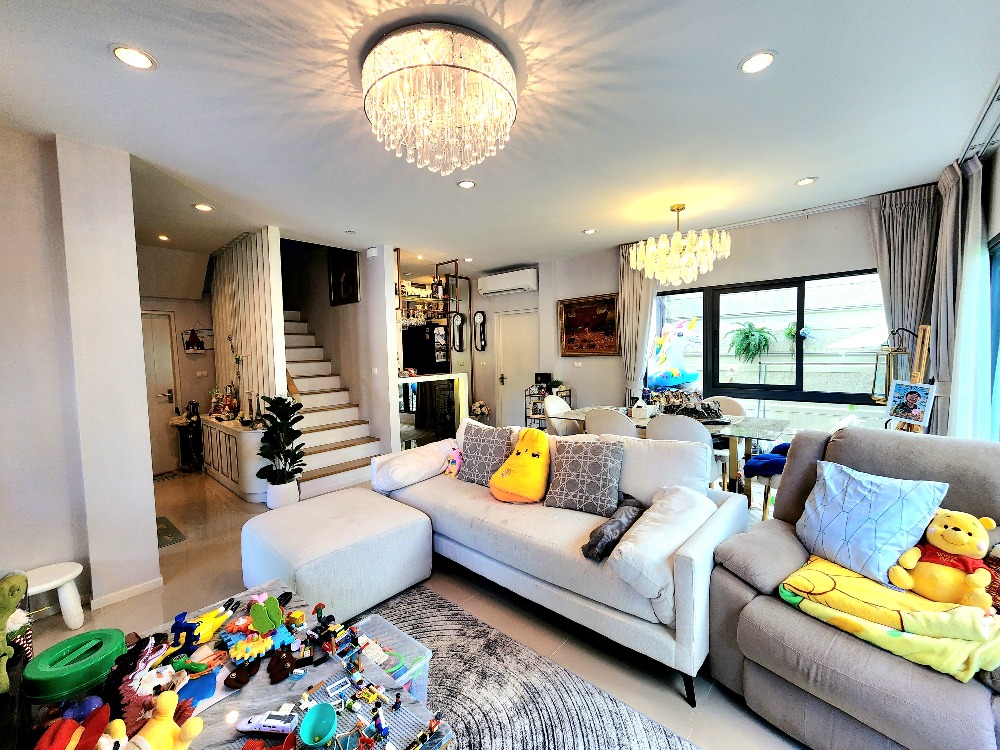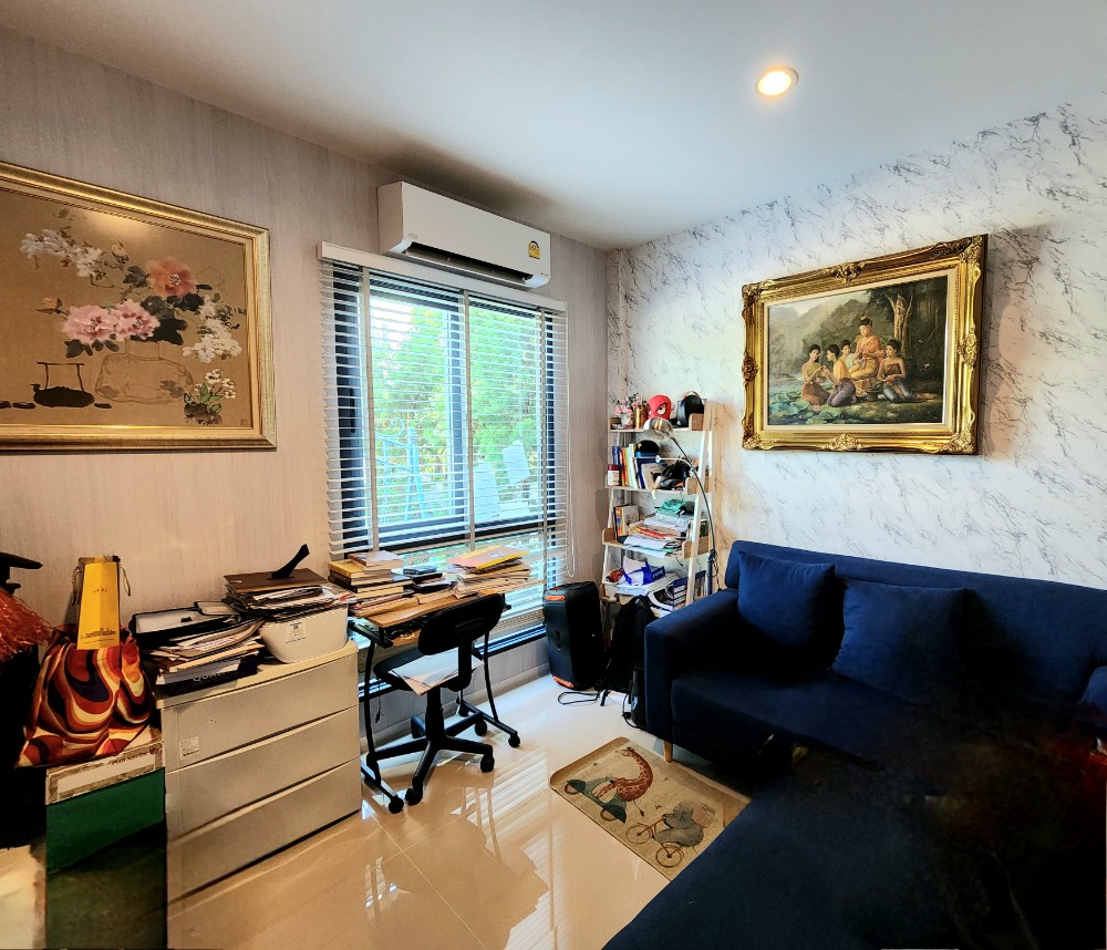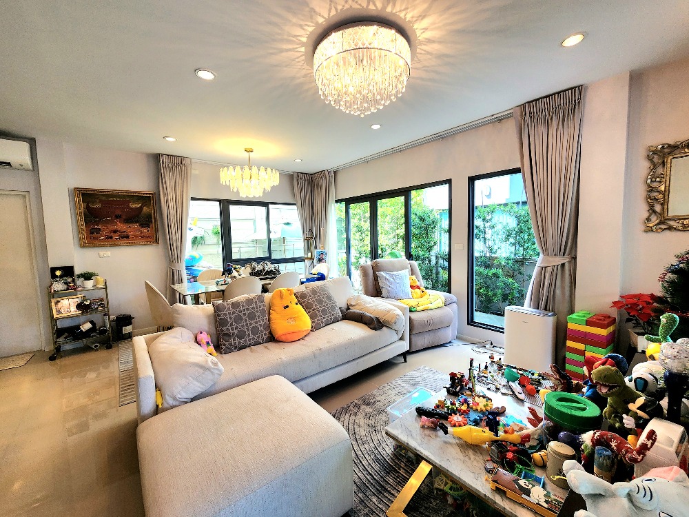 • 3-storey twin house, area 38.7 sq.w., usable area 218 sq.m. • Parking for 3 cars, the front of the house faces east, opposite is a garden • 4 bedrooms, 4 bathrooms, there is a bedroom downstairs for the elderly • Master room has a walk-in closet, very well-proportioned With private bathroom, bathtub • 5 air conditioners, wallpaper on the 1st and 2nd floors, with good quality curtains throughout the house • Very beautiful house, decorated with built-in furniture, premium grade, beautiful, luxurious • Beautiful built-in kitchen, there is an outdoor kitchen at the back of the house, with a roof already installed Complete water pump + water tank • The ground floor is granite Upper floor is laminate • Project location - Kanchanaphisek Road 23, Saphan Sung Subdistrict, Saphan Sung District, Bangkok 10240 • Project facilities - Fitness - Swimming pool with salt system - Large public park, playground - 24-hour security guard - Access Card system for entering and exiting the project (Easy Pass) - CCTV system at the entrance and exit of the project • Convenient transportation - New Krungthep Kreetha Road - Motorway - Suvarnabhumi Airport - Kanchanaphisek Road - Airport Link Ban Thap Chang - Kanchanaphisek Ring Road - Pracham Ratthaya Expressway • Nearby important places - Suvarnabhumi Airport - Little Walk Krungthep Kreetha - The night center - Marketplace Krungthep Kreetha - Triam Udom Suksa Nomklao School - Sarasas Witaed Romklao School For rent 38,000.- / month, 1 year contract, 2 months deposit, 1 month advance payment Interested, contact Inquiry Tel&Line Contact number Khun Su