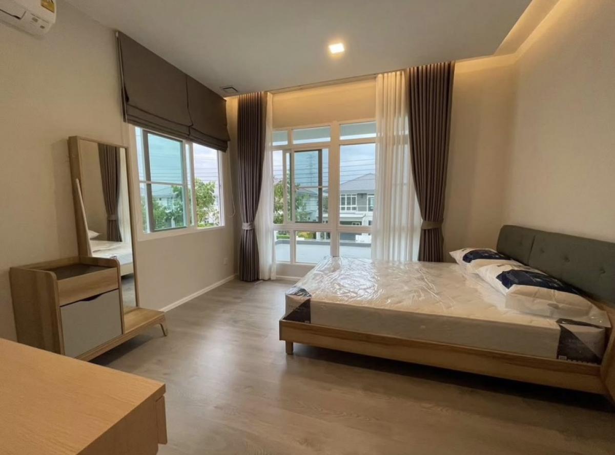 ✅Rent ✅Manthana Bangna-Wongwaen 🔥 New house, never occupied The best location, the alley opposite Mega Bangna, the alley has both Lotus and Number One fresh market The project has entrances and exits on both sides of the road, both Bangna-Trad and Ring Road Good environment, quiet, close to many amenities Area 75 sq.wa., usable area 205 sq.m. with a garden area behind the house, not adjacent to the back 🏡4 bedrooms 🛀🏻 4 bathrooms 1 Working Corner 1 living room 1 kitchen 1 laundry area and dining area 🚗 Parking for 2 cars, the house faces south, the afternoon sun does not shine into the front of the house For rent, price 100,000- baht / month (including common fee with daily gardener) ▶️ Fully built-in, fully decorated furniture ▶️ Balcony with roof attached to the house Relaxing outside ▶️ Complete electrical appliances ▶️ Wallpaper and curtains throughout the house ▶️ Air conditioner, TV in every bedroom with hall downstairs ▶️ Mosquito nets throughout the house and outdoor equipment storage cabinets ▶️ Built-in kitchen with range hood ▶️ Airplus system, burglar alarm on doors and windows ▶️ Magnetic system, burglar alarm for every unit ▶️ New house, never occupied 🚗 Nearby important places ▶️ MEGA Bangna (opposite the entrance of the alley), Central Bangna, Index Bangna ▶️ Lotus (at the entrance of the alley) and Number One Market Ram 2 (in front of the project) ▶️ Concordian International School / Rajvithi Bangkaew School ▶️ St. Joseph Bangna School ▶️ Prince Suvarnabhumi / Sikarin Hospital / Thai Nakarin Hospital 🏡 Project facilities ▶️ 2-storey clubhouse, modern style design ▶️ Saltwater swimming pool / sauna / fitness ▶️ Public park / playground ▶️ 24-hour security, CCTV around the project ▶️ Project entry and exit with Access Card system ✅To arrange the viewing, please Contact me on : Khun Kan Mobile : Contact number ID Line : @khunkan.estate (with @) ✅เพจ Facebook : Khun Kan Property รับปรึกษาซื้อ-ขาย บ้าน คอนโด ที่ดิน อสังหาฯ บางพลี-บางนา
