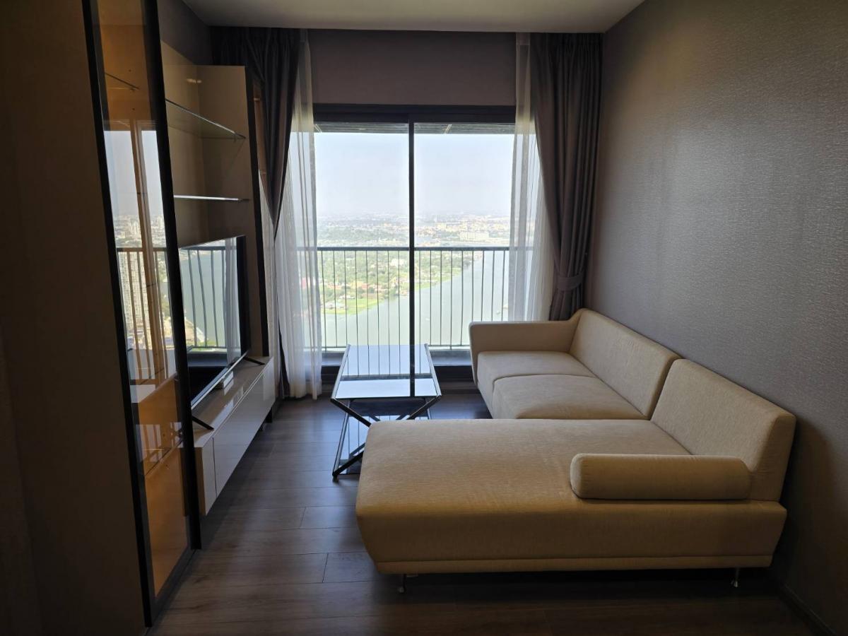 fully furnished high floor corner room see view of Chaopraya river included:- - 2 beds -2 Buildin wardrope - sofa and 60"TV - Build-in Kitchen/Microwave - Fridge - washing machine