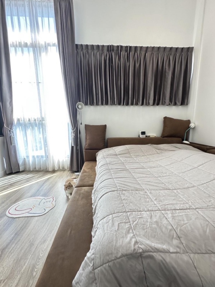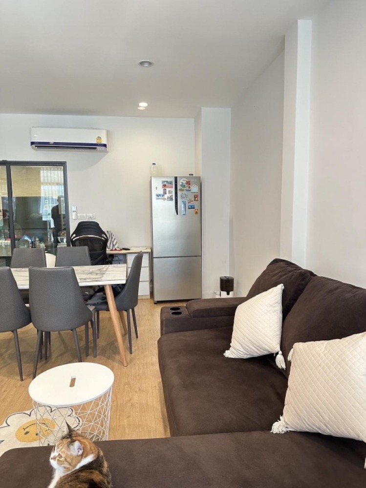 Corner house 21 sq.w. 3 bedrooms, 3 bathrooms, 2-storey townhome, Werve Rama 9 Near Airport Rail Link Thap Chang Near Airport Link - Min Buri Market Corner house, 6.25 meters wide South-facing, cool breeze, no sun in the front of the house in summer 3 bedrooms, 3 bathrooms, 2 parking spaces Master bedroom, 3.7 meters high ceiling 2 magnetic alarm systems installed Brick and cement construction, Q-Con lightweight brick walls 21 meter deep piles, the same depth as the house, from the gate to the back of the house L-shaped kitchen with sink, gas stove, range hood and ventilation fan Car park roof extension with tiles Free 3 air conditioners (18,000BTU / 12,000BTU and 9,000BTU) Water heater 1 unit Curtains Mosquito screens Water tank and water pump **** Transfer fee 50 : 50, Income tax and stamp duty will be paid by the seller Please feel free to contact us Khun Saowalak o Contact number65 (Tel. Tel. 082 two eight two two seven six five) Add Line: @saowaluk.an (Please put @ in front) Website: www.livinginsider.com/public_profile/1/CIbbIj.html Page: www.facebook.com/teededasungha **Proceed with the loan application Take care throughout the trading **Accepting sales, rentals, condos, houses, land and all types of real estate Location: Kanchanaphisek Road, Thap Chang Subdistrict, Saphan Sung District, Bangkok 10240 Size: Area 21 sq m, usable area approximately 134 sq m Price: 4,600,000 baht