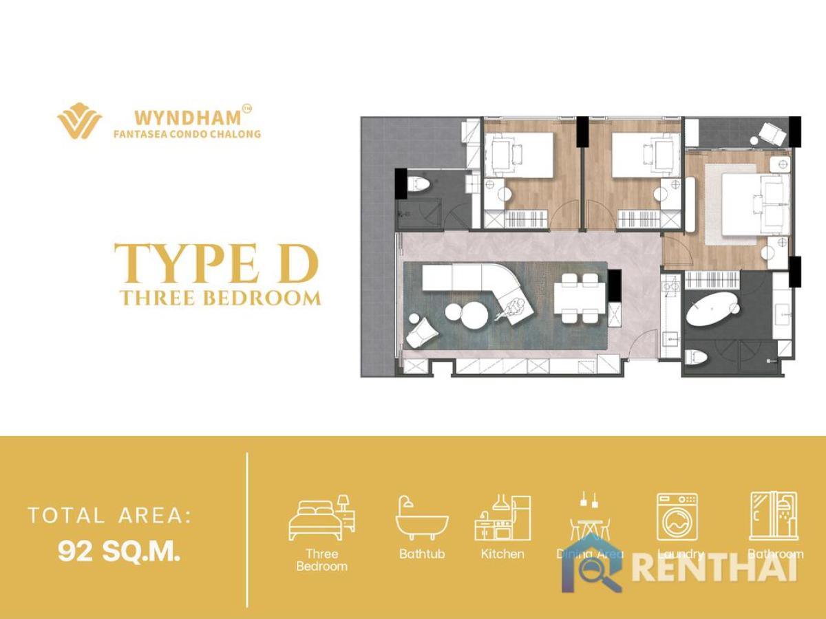 Listing code: #RT02893 Wyndham Fantasea Condo Chalong is a branded residence in Phuket, offering modern resort-style living under the Wyndham hotel management standard. Located in Chalong, it combines contemporary design, premium facilities, and professional rental management—ideal for both holiday living and investment. Starting price: 8,873,400 baht - 3 bedrooms, 3 bathrooms - Size 92 sq.m. - Floor 3 - City view - Leasehold - Partly furnished Facilities: - European kitchen - Bathtub - Washing Machine - Balcony - Air conditioning - Fitness, Gym - Underground parking Location: Chalong, Phuket For more details feel free to contact us by Tel: Contact number WhatsApp: Contact number Line ID: minehappiness https://line.me/ti/p/4FWcxgo_eM (click the link to add line) ……………………………………………………………………… Website: https://renthai.com Facebook Page: https://www.facebook.com/renthai.pattaya Line Official: @renthai Email: Contact email Renthai - your reliable assistant in buying, selling and investing in real estate in Pattaya.