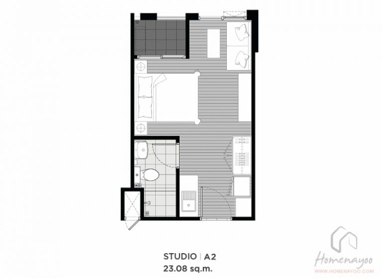 This price has only one room in the project Chapter One ECO Ratchada-Huai Khwang, only 1.99 million, 23 sq m., fully furnished, ready to move in, near MRT Huai Khwang, Central Rama 9 For Sale Condo Ch