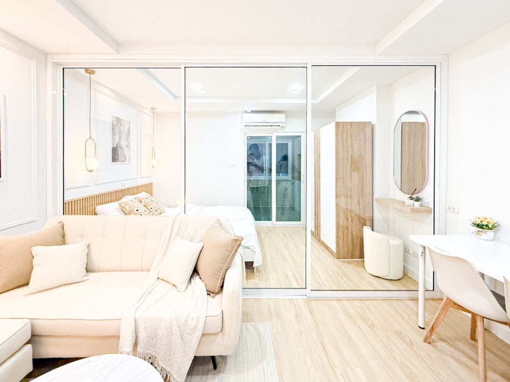 Happy Condo Ratchada 18 ⚡️ Good size room, 3rd floor, fully furnished, ready to move in immediately ⚡️ Price only 1.599 million baht! ✅ Price 1,599,000 baht ✅ Size 28 sq.m. ✅ 1 bedroom, 1 living room with fully equipped kitchen ✅ 3rd floor, building B •••••••••••••••••••••••••••••••••• 💛, Fully furnished, The entire room has been newly decorated 💛 Important nearby places The Street Ratchada 8 minutes Central Rama 9 10 minutes MRT Huai Khwang walk only 5 minutes 🌟 Complete facilities Parking area Private fitness in the building Key Card system for entry and exit, safe 24-hour security 💥 Free parking for both cars and motorcycles 🚗🛵 ••••••••••••••••••••••••••••••••• ✨ Loan consulting service ✨ Free loan application!! If the loan is not approved, 100% refund ☎️ Contact number Mr. Non 🌀 Line ID: @uprise_estate