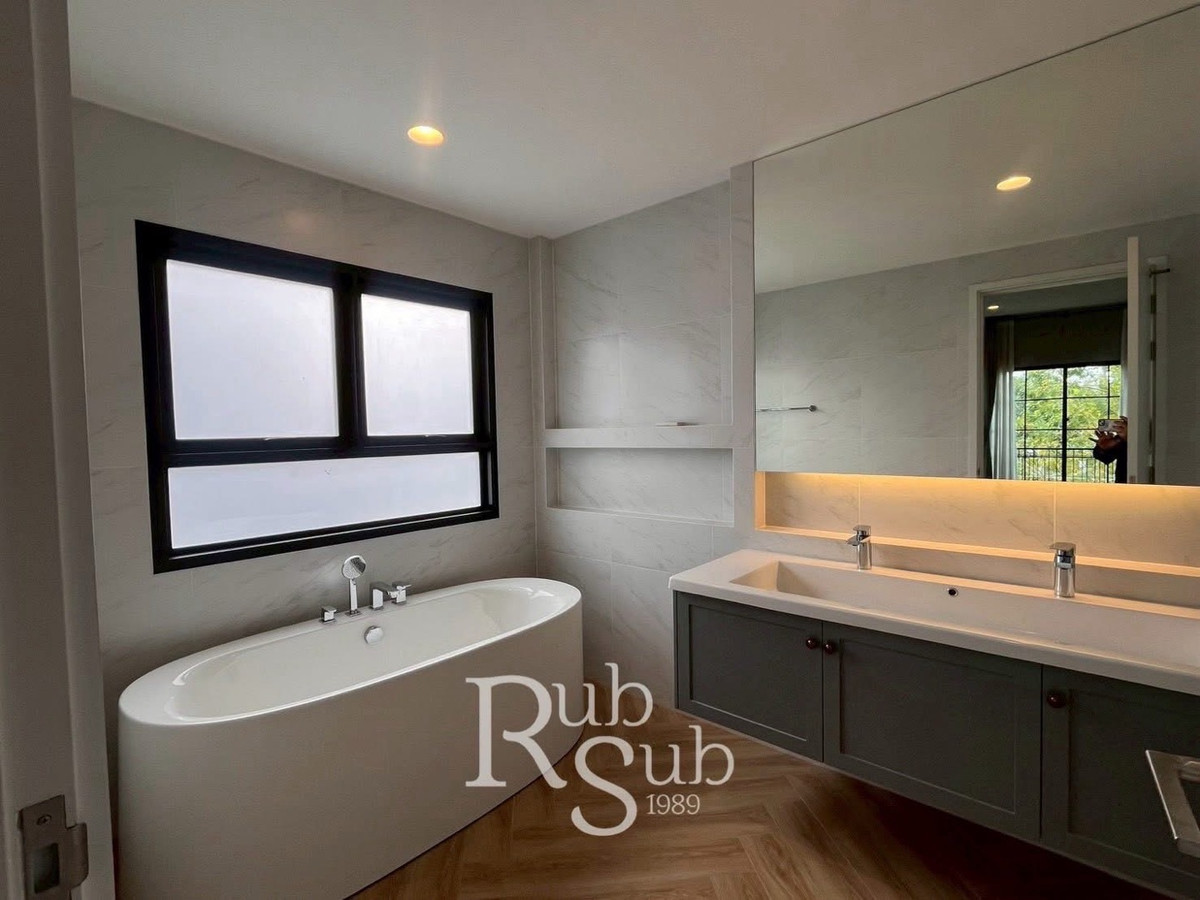 Land size: 90 sq.wah Usable area: 383 sq.m. 5 bedrooms | 6 bathrooms 1 maid’s room Air conditioners, curtains, and kitchen provided 🔽 Facilities: • Clubhouse • Swimming pool • Project green areas • CCTV system • Key card access • 24-hour security with electric fence throughout the project • EV charging station 📍 Nearby Places: • Don Mueang International Airport • Red Line Commuter Train • Harrow International School • IT Square • Muang Thong Thani • Vibhavadi Hospital • St. Francis Xavier School 💰 Rental price: 120,000 THB/month (Common area fees included) Minimum lease term: 1 year Rental conditions: – 2 months security deposit – 1 month advance rent ━━━━━━━━━━━━━━ 📞 Contact | For more information Professional Real Estate Agents 📱 Tel: Contact number (Milk) Contact number (Chompoo) 📧 Email: Contact email 💬 Line ID: @rubsub1989 🔗 Click: https://lin.ee/xeKSayS 🌐 WeChat ID: rubsub1989