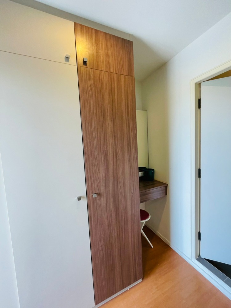 For rent Lumpini Town Lat Phrao Phase 2 Condo Room size 45 sq m., Building A, 6th floor, 2 bedrooms, 2 bathrooms, 1 living room, 1 kitchen, 2 balconies Electrical appliances - 43" LG TV - 3 Daikon air conditioners in all rooms - Refrigerator - Electrolux vacuum cleaner - Water heater in master bedroom - LG microwave - Toshiba kettle - Small table fan Living room furniture - 3-seater sofa with sofa side table - TV top and TV wall-mounted cabinet - Glass-top rice table with red chair - Wall-mounted shoe cabinet Master bedroom furniture - 5-foot bed, high-quality Slumberland thick spring mattress - Wall-mounted shelf - Wardrobe and dressing table - 3.5-foot bed, high-quality Theraflex thick spring mattress - Writing desk with chair - Open cabinet and wall-mounted shelves - Open wardrobe with black aluminum frame With drawers on wheels Price 13,500 baht Tel. Cat Contact number Line: @katagent http://line.me/ti/p/~@katagent Winner Estate Co., Ltd., accepts sales and rentals in Bangkok. - - - - - - - - - - - - - - - - - - - - - Facilities: elevator, fitness center, garden, 7-Eleven store and restaurant in the project, 24-hour security, keycard, CCTV Near: The Jass Ramintra, Lat Pla Fresh Market, Krirk University, Sripatum University, CentralPlaza Ramintra, Big C Ramintra, Lak Si Monument Highlights: Beautiful location, convenient transportation, beginning of Lat Phrao Road, near the Pink Line MRT, Khlong Bang Phai - Min Buri, convenient entrance and exit on 2 routes, Ramintra Road and Kaset-Nawamin Road, next to Soi Lat Phrao 70 Near the Pink Line BTS Station