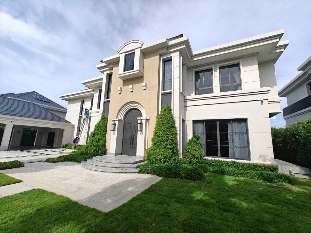 For Sale: Lake Legend Chaengwattana, lakeside mansion (New house, just finished decorating) Selling price 89 million baht Just completed, decorated with furniture (all!) Beautiful as in the pictures, decorated in a simple and luxurious Modern Luxury style with imported marble throughout the house -Avigon house style, the largest size in the project -Land area 229.22 square wah -Usable area 570 square meters -4 bedrooms | 1 dressing room | 5 bathrooms | 6 parking spaces -Beautiful location, views on both sides (lake view and garden view of the project) -The house has passed the home inspection by a leading company and repairs have been completed -All furniture (Build-in) and ceiling work -Cooking kitchen set and Hood brands SMEG, Hafele -Custom-made new vinyl flooring (Guaranteed to be waterproof and moisture proof), which the project uses Engineering Wood (if it gets wet, it will become damp and swell) - 7-meter-high Book Match marble - Build-in set for each room (Hafele Soft Close door set) - Newly decorated ceiling in every part as Drop ceiling + hidden lighting - Decorative lamps (except Chandelier) - Imported floor tiles (Italy), decorated with special carvings - Stairs decorated with imported tiles (Italy) with hidden lighting on each step - Large Jacuzzi bathtub, Cristina brand, Luzern model with Rain Shower from the ceiling - Limited edition Kohler sanitary ware, every piece - Extra large Master bedroom and Walk-in Closet, larger than the rest of the project - 16 CCTV cameras ready to use via mobile phone (the new system can see in color at night) - Extra large maid's room - Garage light - Water heater and air conditioner Installation complete Contact..Khun Ple: Contact number Contact number Line ➲ @neoliving Line ➲ https://bit.ly/40cPidJ
