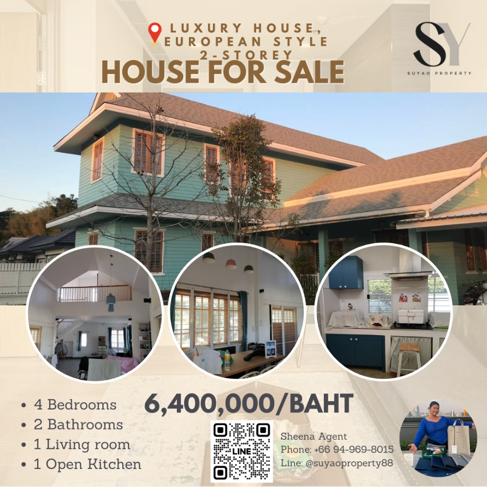 SYR2641 🏠House Luxury house, European style 2-storey 💰Selling price 6,400,000 baht 🌳Spacious area, garden around the house 📍Location: https://maps.app.goo.gl/uk1dVszsUK9NX8C88 - Bedroom 4 / Bath 2 - Land size 2 ngan / 200 sq.m / Floor 2 floors ✅There is a large balcony area connected to the garden of the house Designed by architects and environmental engineers at the professor level according to the appropriate direction of the sun and wind, making the house cool and not hot ✅Good ventilation, energy saving ✅There are large trees planted, able to shade the entire house ✅There is a large water tank behind the house with a building to protect from the sun and rain, able to store water for two to three days during the dry season ✅There is a wastewater separation system with a reusable tank, reinforced with a special structure to withstand earthquakes ✅There is a storage room that is a building in the backyard, built separately The fence has a strong structure, the foundation of the fence is a retaining wall ✅Good location, close to the city, on high ground, not flooded by the lake Contact for viewing Phone: Contact number (Sheena) WeChat: suyaoproperty999 Line Official: @suyaoproperty88 Line Official: https://lin.ee/keFefcy Welcome Co-agent