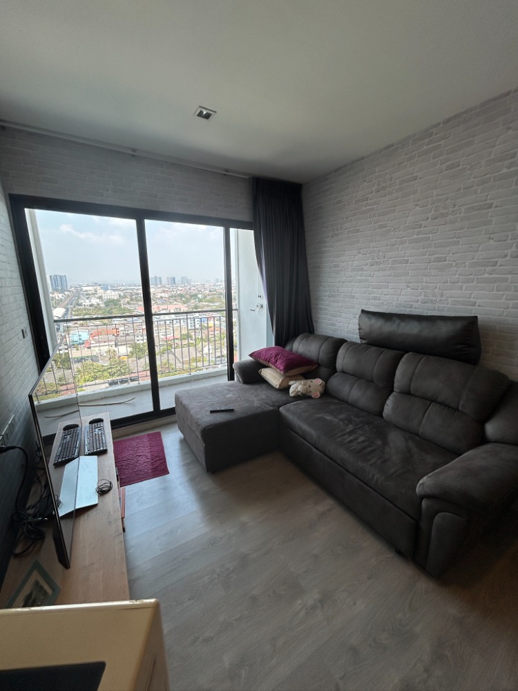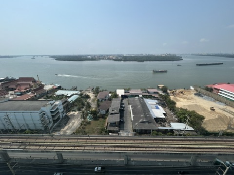 Condo for sale, Knightsbridge Sky River Ocean, 63 sq.m. 2 bedrooms, 2 bathrooms Beautiful view, 2 views, river bend view, Chao Phraya River and Sukhumvit Road city view The river view in the evening is beautiful, seeing the sun setting in the Chao Phraya River High floor, quiet, corner room The room is decorated in a family style, there is a room for babies Or the room can be converted into an office The location is suitable for working people, government officials, company employees who have to work in Pak Nam, industrial estates in Samut Prakan, Bang Pu, working along the BTS line or having to work in the city, it is a good location, take the BTS from the beginning of the line Selling at a price lower than the appraised price, not too expensive, not as expensive as you think The owner has lived in the room all along, taken good care of it, never rented out
