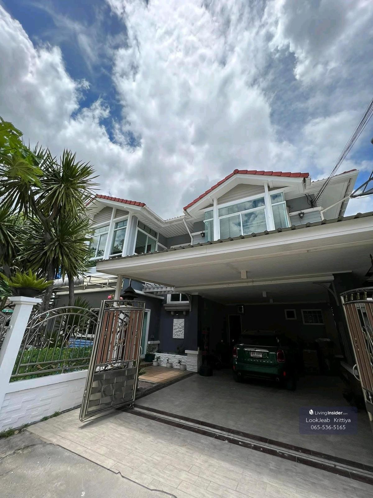 House for sale at Lat Phrao 71 with all furniture 9,800,000 (excluding transfer fee) 3 bedrooms, 3 bathrooms, 89 sq m. Project: Prachaya Garden Home Location: Soi Nakniwat 48, Nakniwat Road - Lat Phrao 71, Lat Phrao Subdistrict, Lat Phrao District, Bangkok Land size 89 sq m | Usable area 360 sq m, wide area in front of the house 1. 3 bedrooms | 3 bathrooms 2. Living room 3. Buddha room 4. Karaoke room (KTV) 5. Laundry room 6. Parking space for 2 cars, another 1 in front of the house Fully furnished Ready to move in 4 TVs, 6 air conditioners, air filter, other electrical appliances, free Wi-Fi, safe, electric massage chair - [ ] Convenient transportation, inexpensive food (Entrance: Ratchada 32, Lat Phrao 71) - [ ] Nearby locations 1. Central Eastville 2.1 km 2. Crystal Park 1.3 km 3. The Walk Ramintra-Kaset Nawamin 1.7 km 4. Hua Mum Market 1.5 km 5. Satri Witthaya 2 School 5.50 km 6. NIVA American International School 8 km