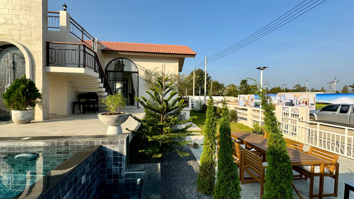 Sell ​​Khao Yai Fully Furnished with 10 m and garden Price 7.49 million baht, near Tosca, only 5 minutes Single house, Khao Yai 3 bedrooms, 2 bathrooms, area of ​​103 sq.w., 200 square meters, Fully Furnished ready to move in. There is a large swimming pool, size 10*3.5 meters and a British style garden Private projects are only 17 units ** Suitable for relaxation. Close to Bangkok for just an hour. Convenient to travel. 3052 road (Toska) into the alley for only 5 minutes Near the Wisfarm Near FloryDay Cafe Near Toscana Interested in visiting the sample house. Ple, call Contact number ** ** Line: https://lin.ee/gnelgq6** # Lawn house #Pluvilla #Ban Khao Yai #Khao Yai #Nature #One floor house