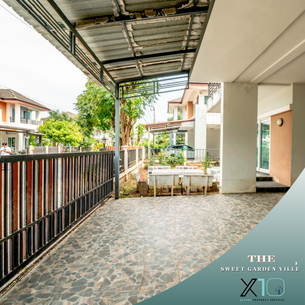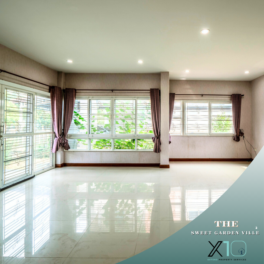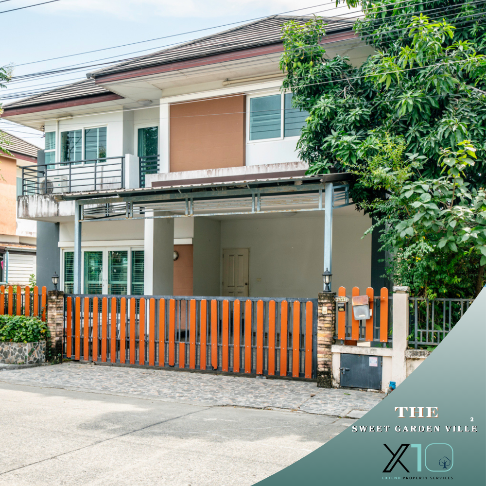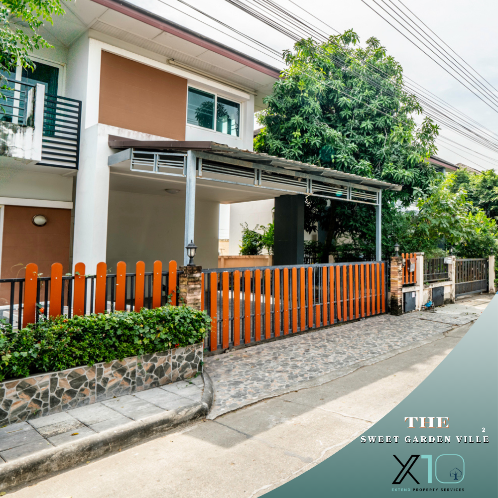 2-storey detached house with a garden area around the house 3 bedrooms, 3 bathrooms, 1 living room, 1 kitchen Parking 2 cars The interior according to the whole condition -Curtains - Bed - Air conditioner - 2 water heater - Water pump+water tank - Built-in kitchen Facilities- Park in the project - Fitness Room - Swimming pool - Central garden - CCTV (CCTV) - 24-hour security Near the Chatu Choti Expressway 1.8 km . It takes 5 minutes Near the motorway 5 km. It takes 9 minutes ☎️ Make an appointment before visiting the project/For more information, please contact ☎️ Line https://lin.ee/ mkxedym or call Contact number