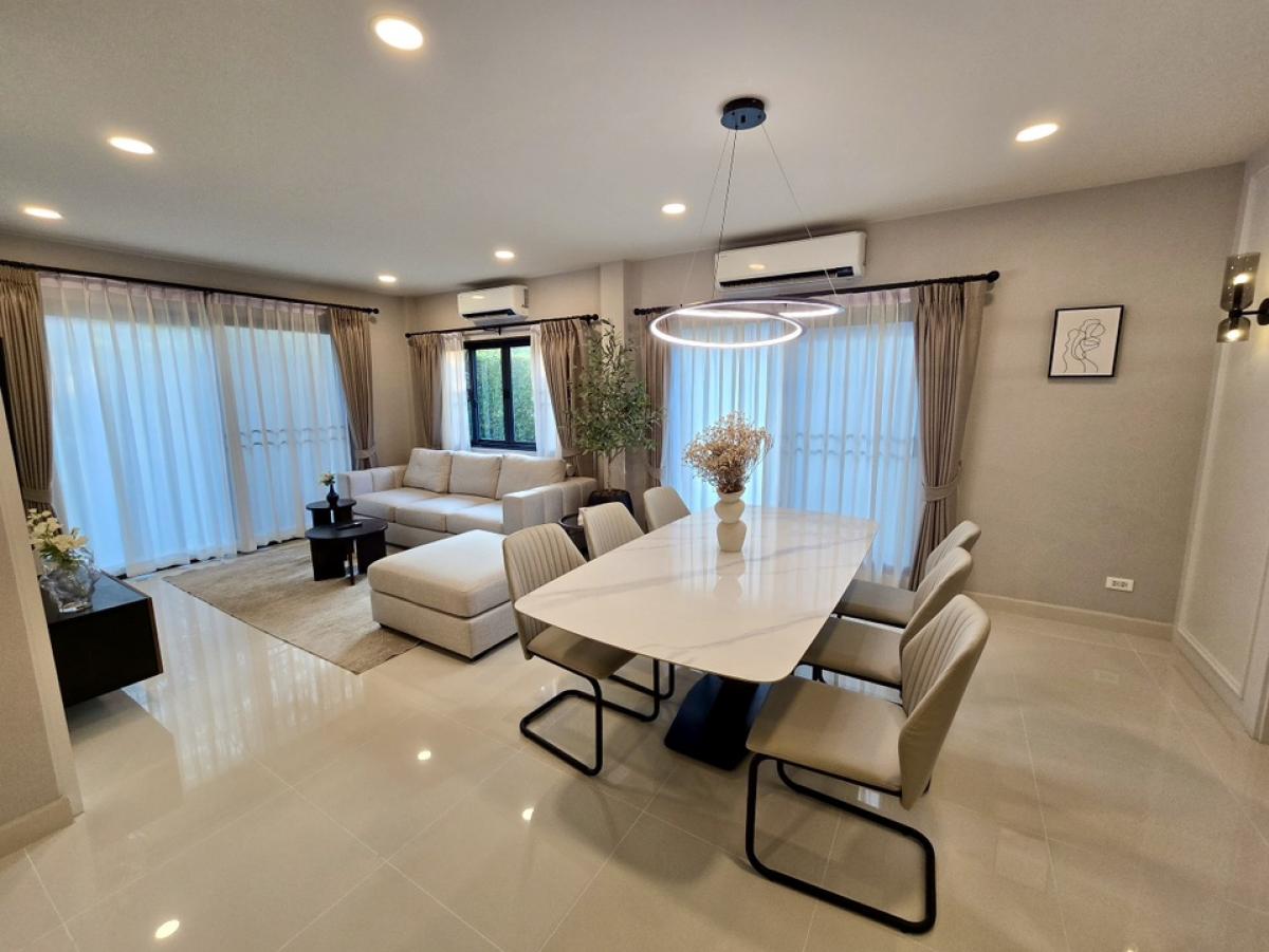 🌟For rent: detached house in Centro Bangna. Two-storey detached house features 4 bedrooms and 4 bathrooms. Fully furnished and beautifully decorated. Located near Mega Bangna. Ready to move in. Developed by AP. 🏡Property details: Two storey detached house The unit is located near the U-turn area, so there’s more land. Land area: 55.5 sq.w. Usable area: 190 sq.m. 4 bedrooms /4 bathrooms The living area is combined with the dining area. 1 Kitchen 2 parking spaces Digital Door Lock ✅ Fully furnished 🔌Appliances: Two TVs, one 65-inch, and one 55-inch. - 6 air conditioners - 4 hot water heaters - Microwave - Electric Stove - Refrigerator - Washing machine and dryer 🏊♂️🏋️ Facilities: - Clubhouse - Swimming pool - Fitness - Kids and games room - 24-Hour Security Service 📌Nearby landmarks: Mega & IKEA Bangna Concordian International School Thai-Singapore International School 💼 Rental conditions: 💥Rental Fee: 92,000 THB/month ✅2 months' deposit + 1 month’s advance rental fee ✅Contract for at least 1 year 🌟Special services included in the rental fee: Air conditioner cleaning twice per year. For inquiries, please contact D-Living (Agent)Tel/Line: Contact number Line ID: Dlivingproperty https://line.me/ti/p/ZL-t96Ar4K