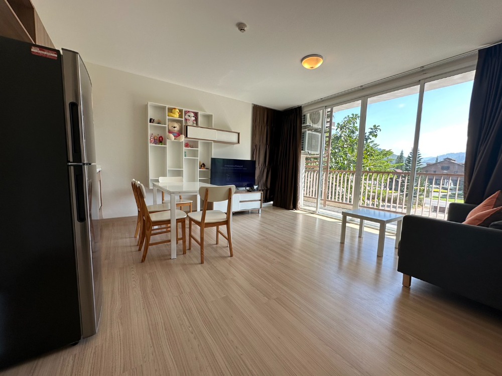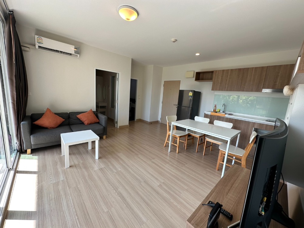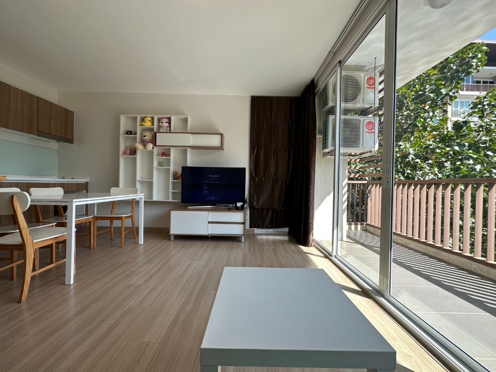 2nd floor, 50 square meters, balcony at the pool 2 air conditioners, water heater, refrigerator, kitchen, kitchen (with stove and hood) Furniture: Bed, mattress, closet, curtain, dining table chair Guest table set Fitness, swimming pool, garden, security system, CCTV in and out with Key Card system Contact Sirimon Contact number Line ID: Aitim-Sho