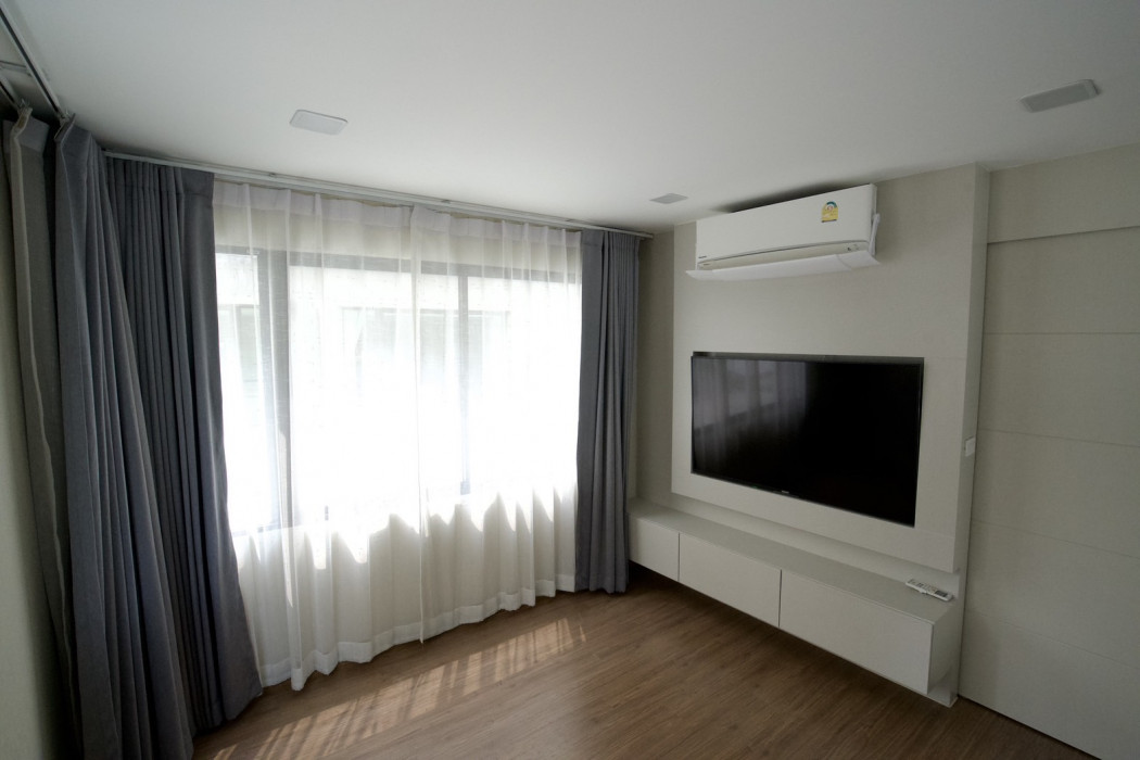 Twin house for rent, Patio, Rama 9, land development 29.1 meters, 4 bedrooms, high ceilings :: Pros ::? () Very close to Ekamai-Thonglor. There is only 7-8 km. Ceiling, 1st floor, 2.3-4.9 meters high,