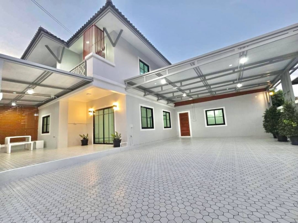 Big Twin House, 5 beds, Pruksa 14A, Bang Bua Thong‼ ️‼ ️ Code: R4959 5 bedrooms 5 bedrooms Twin houses, 2 floors, 42.8 square wah, 2-4 car parks. The back of the house has a width 1 washing area. Separate the proportion -Free 2 air conditioners Water pump and water tank -There is a bedroom for the elderly, 2nd floor, bedroom -5 bedrooms (the ground floor has 2 bedrooms and upper floor with 3 sleeping rooms) 2 bathrooms, 1 kitchen There is a separate washing zone -There are 2 doors entering the house. The sliding door can park the car and the side door can walk into the house -1 kitchen width of 24 square meters -The front of the house, Nanth Tai Price 3,290,000 baht. Free tax transfer fee 📌📌 This house map https://maps.app.goo.gl/17jmvg67Ksur5ljw9?g_st=il Interested in asking for more/home appointment, call/line Contact number, 084-8068