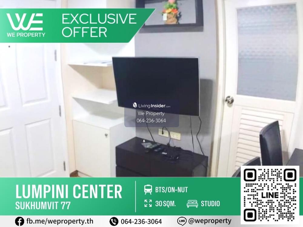 Property Code (NC-JOB01) Lumpini Center Sukhumvit 77 (Lumpini Center Sukhumvit 77) 1 studio Size 30 sq.m., 3rd floor, D building The room is beautiful. There is privacy Complete furniture+electrical appliances Good price ✨✨ Selling only 1,450,000 baht !! ✅ There are many rooms to choose from ✅ Keep benefits for Customers ✅ Take care of submitting loans through 100% ✅ Take care of all steps ✅ Renovated Interested Mobile: Contact number Link Line: https://lin.ee/7djs5jl id Line: @weproperty-P https://line.me/ti/g2/z6wvg0AO6_ve6FGBDQ7Nuf_Qvyxj-YukvuCihQ?utm_source=invitation&utm_medium