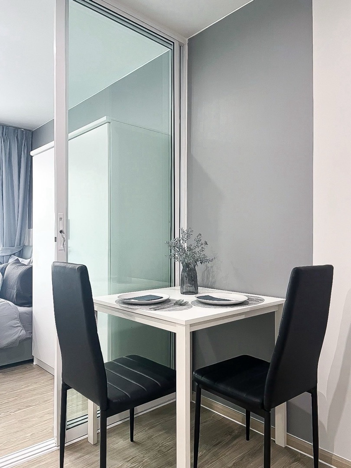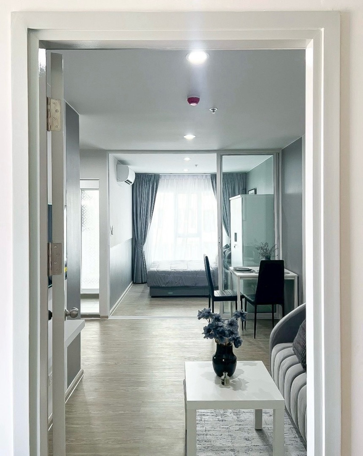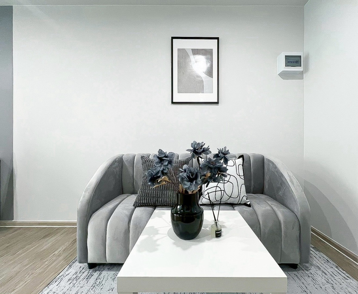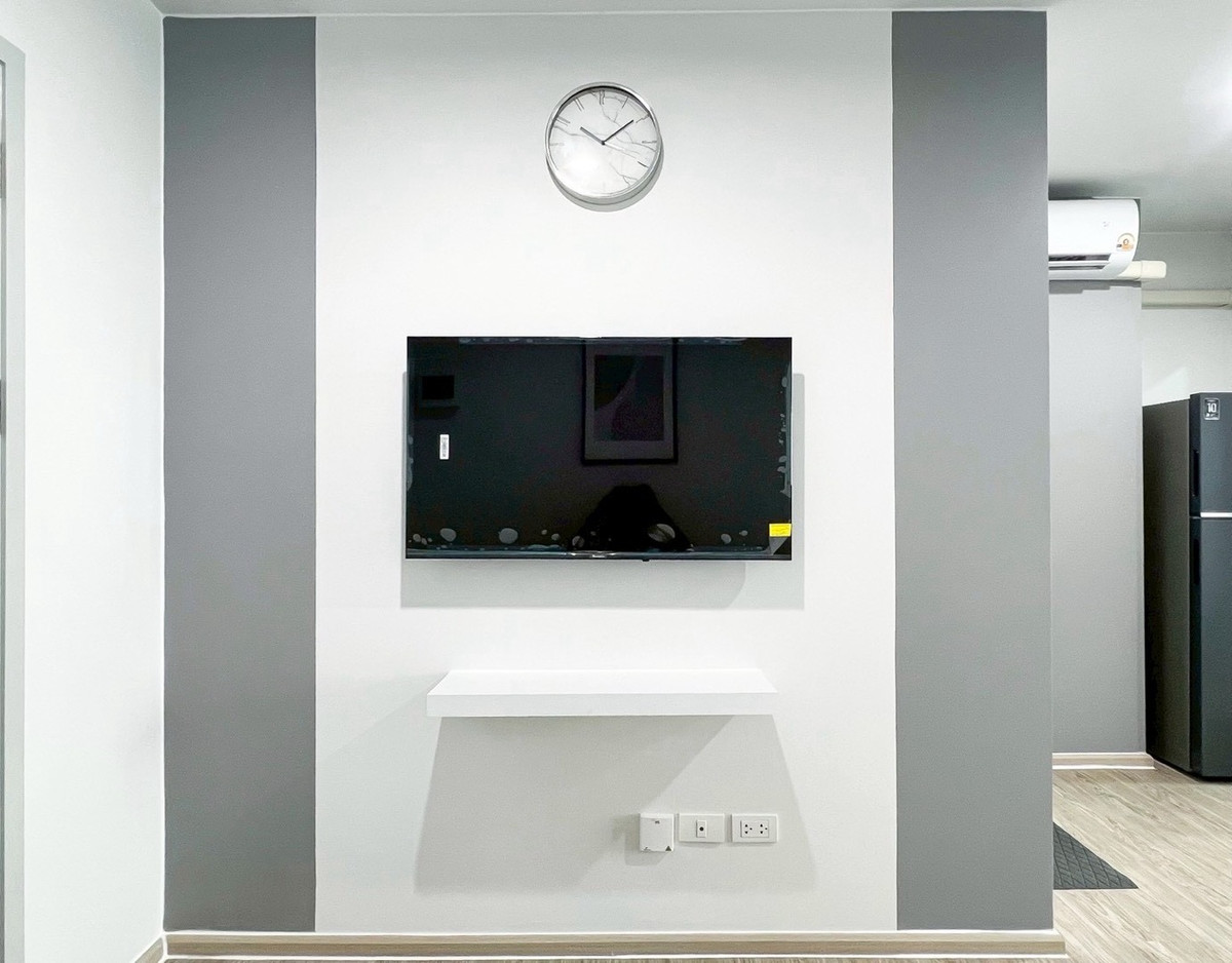 2 air conditioners, wardrobe and sofa, built-in kitchen, dining table, 2 door refrigerator, microwave, water heater, Smart TV, washing machine 🚝Near BTS Bangna 🌳 Pool view🌈 🌳Rent 12,000.-/month 1 year