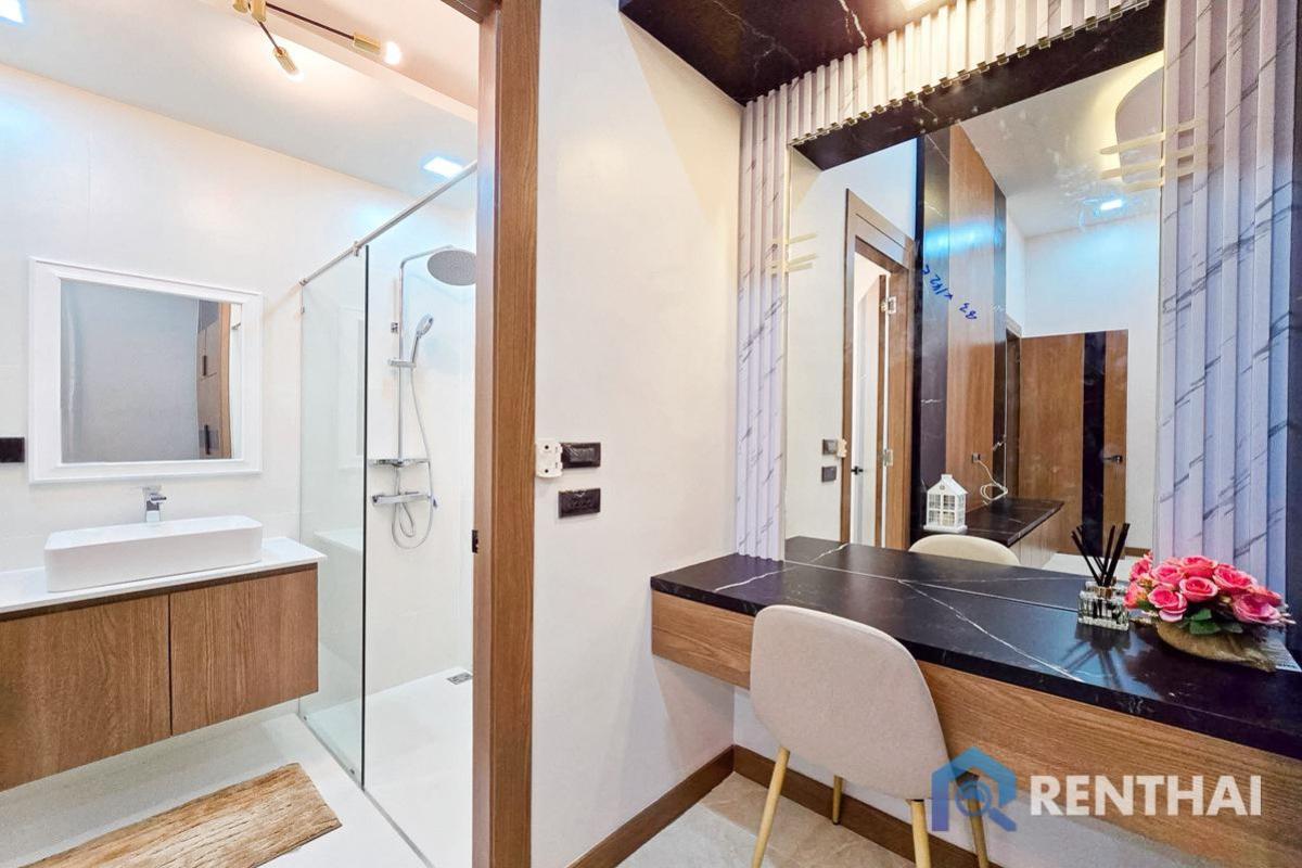 Listing code: #RT03003 Urgent! Only three units available at this price! A single-story detached house in a Nordic style with high ceilings for a spacious and airy feel. Comes with a private swimming pool, 3 bedrooms, 4 bathrooms, and sits on 100 square wah of land with 197 square meters of living space. Fully furnished with modern-style furniture and appliances. Prime location in the Siam Country Club area, close to Mabprachan Reservoir and the expressway. Sale price: 8,900,000 baht - 3 bedrooms, 4 bathrooms - Land size 100 sq.w. - Usable area 197 sq.m. - 1 floor - Pool view - Thai quota - Fully furnished Facilities: - Pet friendly - Private pool - Pool Access - Private Garden - Garden Access - European kitchen - Terrace Location: East Pattaya, Pattaya For more details feel free to contact us by Tel: Contact number WhatsApp: Contact number Line ID: minehappiness https://line.me/ti/p/4FWcxgo_eM (click the link to add line) ……………………………………………………………………… Website: https://renthai.com Facebook Page: https://www.facebook.com/renthai.pattaya Line Official: @renthai Email: Contact email Renthai - your reliable assistant in buying, selling and investing in real estate in Pattaya.