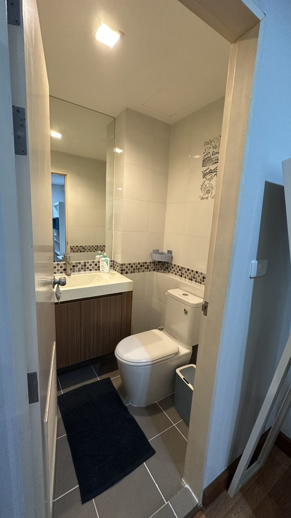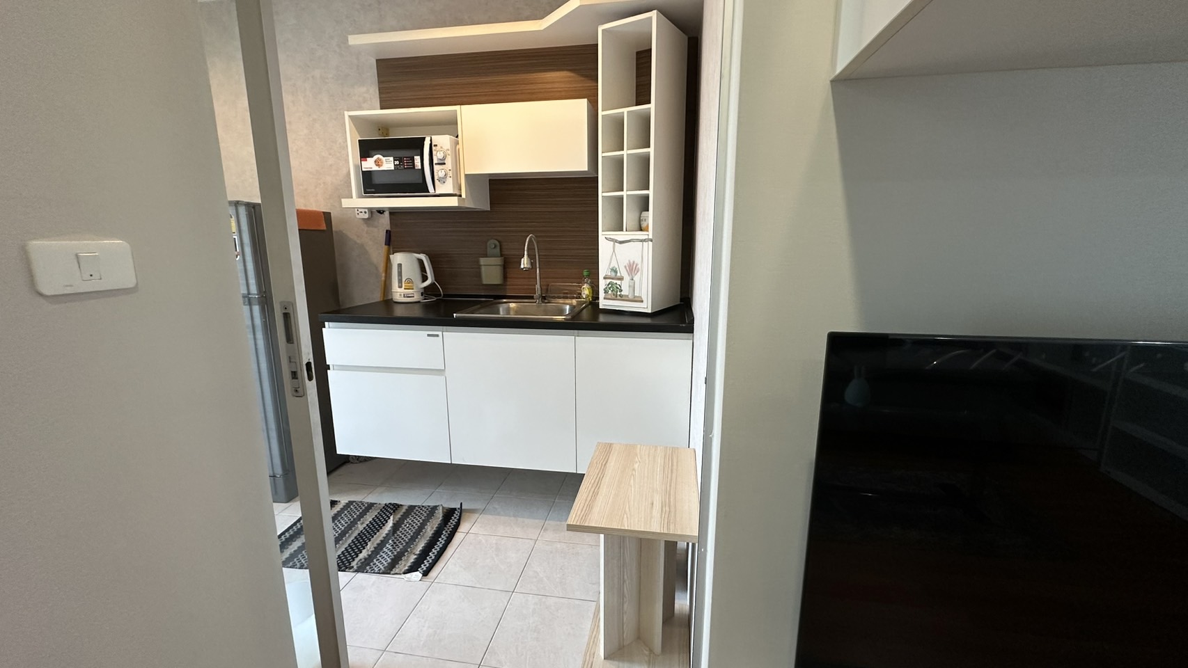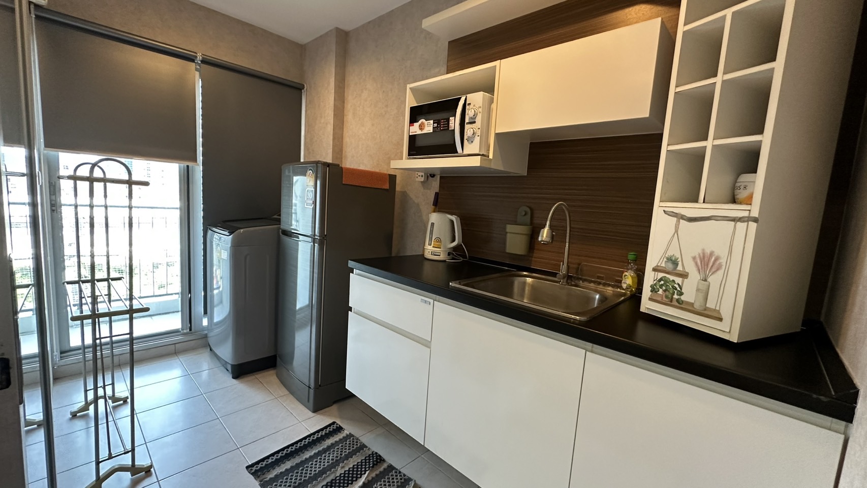 1 bedroom, separate kitchen Size 35 sqm, excellent location, only 150 meters to Bangchak BTS Near the expressway up to Sukhumvit 62, M Tower, DKSH, Jia Tai, Cosmo and Zip Venus There are 7-11 side of the project. 2 -foot bed, 2 wall air conditioner with Google TV washing machines Bedroom and terrace exit on the evening, open the wind