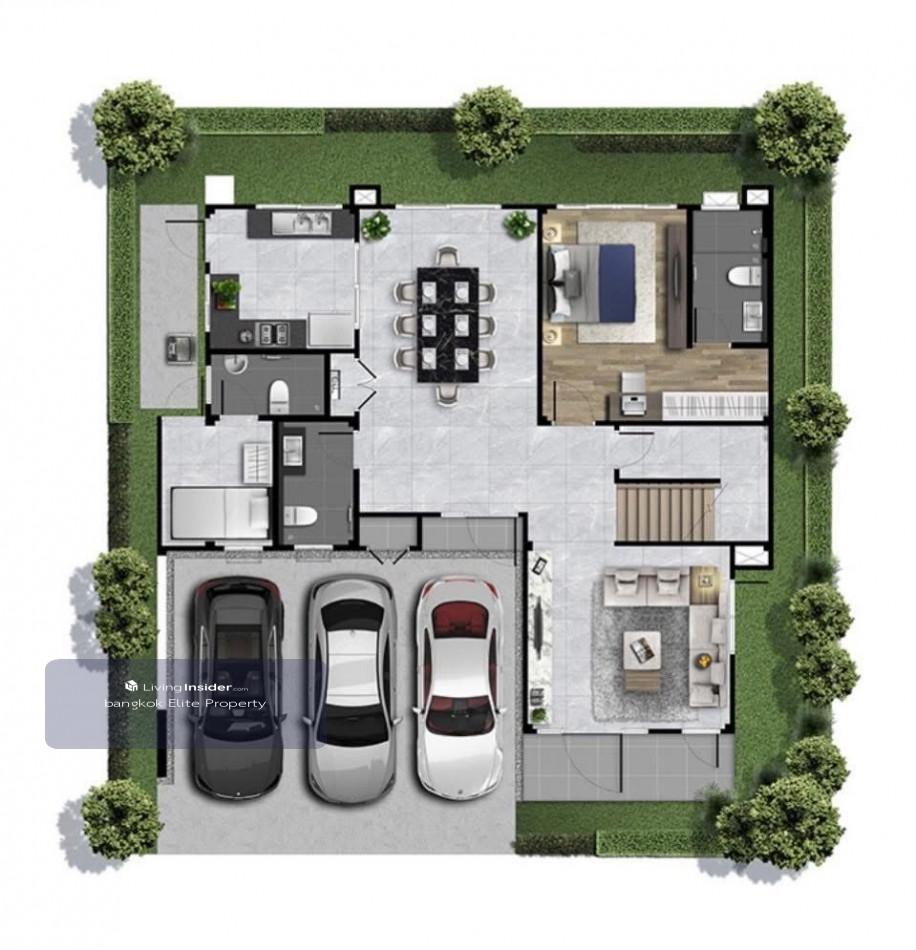 Rent a detached house The City Bangna, a new project :: Pros :: () Only 5 minutes to Mega Bangna New house No electric pole Fully Furnished :: Details :: - Size 63 sq.w. - Area 285 sqm. - Type 4 bedro
