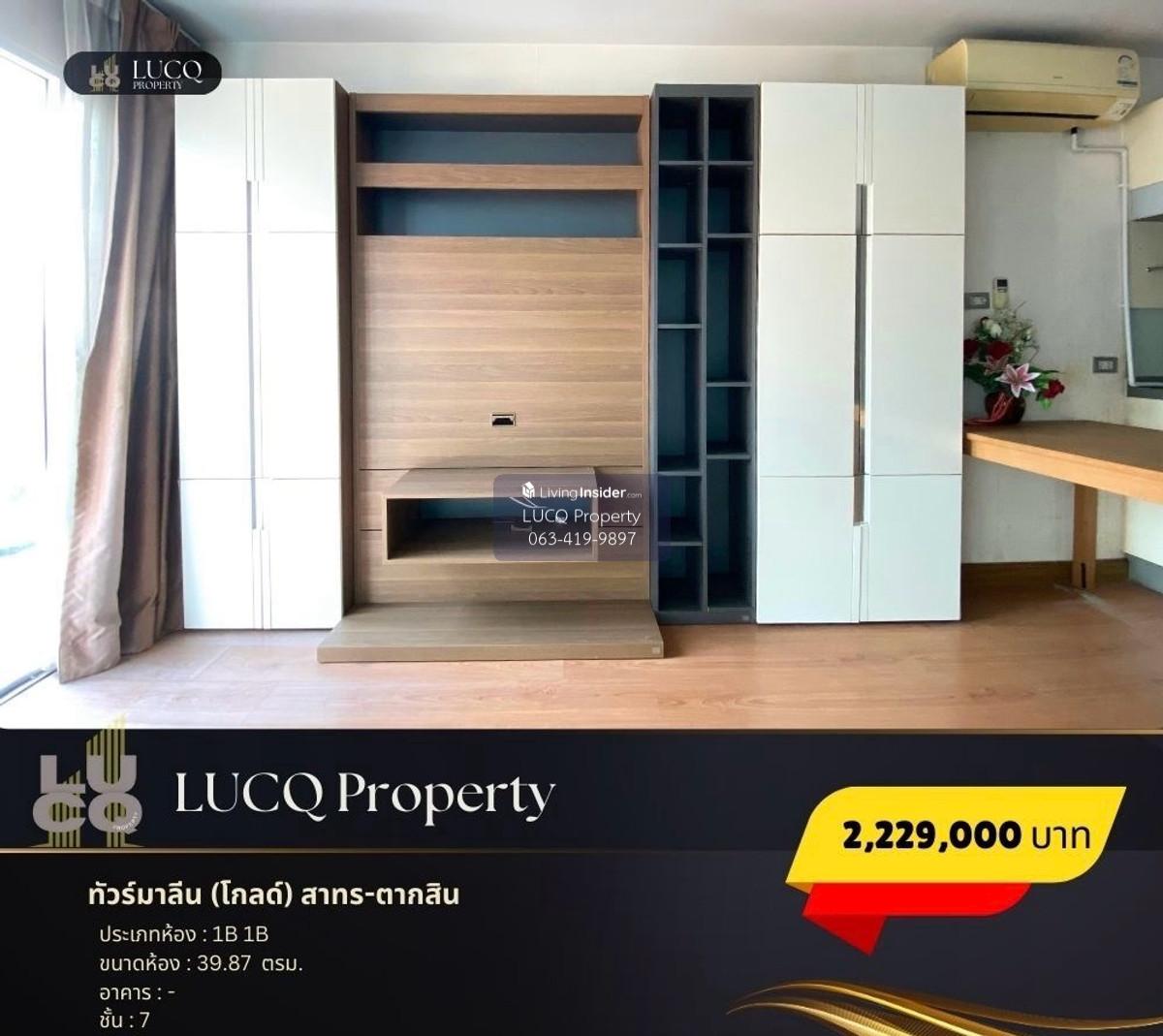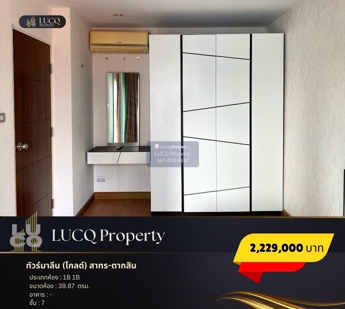 Tour Maline (Gold) Sathorn - Tourmaline (Gold) Sathorn - Taksin) Located at Charoen Nakhon 14, Khlong Ton Sai Subdistrict, Khlong San District, Bangkok. Connected to the surrounding area, such as Charoen Krung, Sathorn, Silom, Khlong San, Wongwian Yai, Petchkasem Price is 2,229,000 baht 39.87 sqm. The living space in the room is divided into 1 bedroom, 1 bathroom in the middle area for relaxation. And the internal kitchen that has been proportionally proportioned Internal facilities - Swimming pool - ONE ONE Access Key-Card System Nearby - Krung Thonburi BTS Station (KRUNG Thonburi BTS), 450 meters (2 minutes) distance (2 minutes)- BTS Skytrain Station Wongwian Yai BTS Station, 800 meters (2 minutes) distance - Khlong San Pier), distance 1.9 km (6 minutes) - The Peninsula Bangkok) distance (3 minutes)- The Mall Life (The Mall Life) 3.5 kilometers (8 minutes) - Central World, distance 6.6 km (18 minutes) - Central Chidlom (The Store of Bangkok), distance 7.3 km (18 minutes) - Chulalongkorn University (Chulalongkorn University) distance 5.7 km (14 minutes) -Taksin Hospital, distance 1.8 km (5 minutes) -Thonburi Hospital, distance 5.3 km (13 minutes) For more information (? (YoQ) Line Official: @lucq.property #Condo for sale #Condo Charoen Krung #Sathorn #Cheap Condo