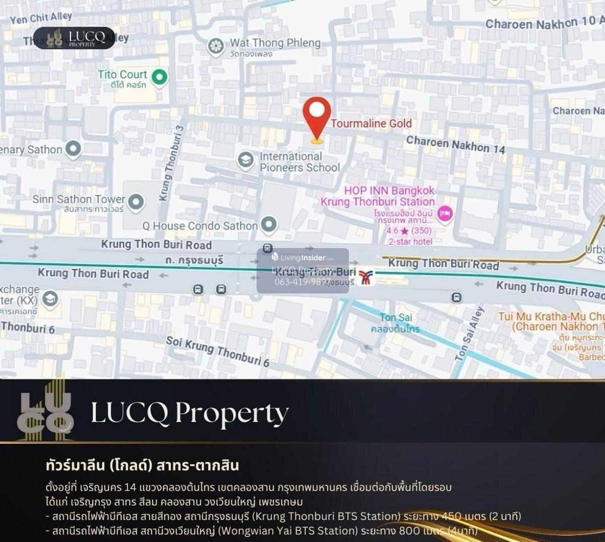 Tour Maline (Gold) Sathorn - Tourmaline (Gold) Sathorn - Taksin) Located at Charoen Nakhon 14, Khlong Ton Sai Subdistrict, Khlong San District, Bangkok. Connected to the surrounding area, such as Char
