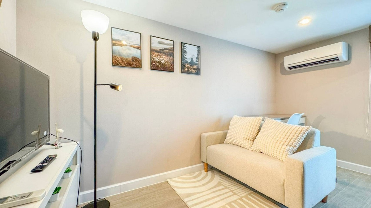 Details: Condo Bang Sue, fully decorated, as per the cover, ready to live in. Metro sky Bang Sue, 2-story condo (can be rented short term) Room size 39 sq m., 18th floor, ceiling height 4.5 meters, airy and comfortable Fully decorated room. Complete with electrical appliances Ready to move in Decorated in a warm style with space, clean, comfortable to the eye, airy, looks spacious and inviting to live in Photos from the actual location, not fake on the cover Furniture in the room, bedroom furniture as in the picture , living room furniture as in the picture , built in kitchen , has a work corner Electrical appliances TV Refrigerator Microwave Front-loading washing machine Water heater 3 air conditioners Near work areas - SCG Bang Sue - Gateway Department Store - Kasemrad Hospital - Central Ladprao -Chatuchak Park Travel -BTS Skytrain Station, Bang Son Station (light red) 0 m. sky walk connecting 2 stations -BTS Bang Son Station (purple) 300 m.-Expressway, Prachanukul Checkpoint LIVE THE DIAMOND LIVING, live a bright, modern life Metro Sky Bang Son Interchange luxury condominium The building design is outstanding with Diamond Design in placing the glass angles to give it a sleek shape. Reflects light like a diamond that allows you to live a superior life Get a view of the skyline at every angle with complete Sky Facilities in a potential location, next to the Bang Son MRT, connecting point for 2 electric train lines (light red line and purple line) Near Prachachuen Expressway and Si Rat Expressway (Prachanukul Checkpoint) near the new Gateway Bang Sue Lifestyle Mall Only 1 station to the Hub, Bang Sue Grand Station, the center of ASEAN rail travel Rent 15,000 baht/month 1 year rental contract 2 months deposit 1 month in advance Contact Contact number Line : rangsima07https://line.me/ti/p/8UWDXSwR6D
