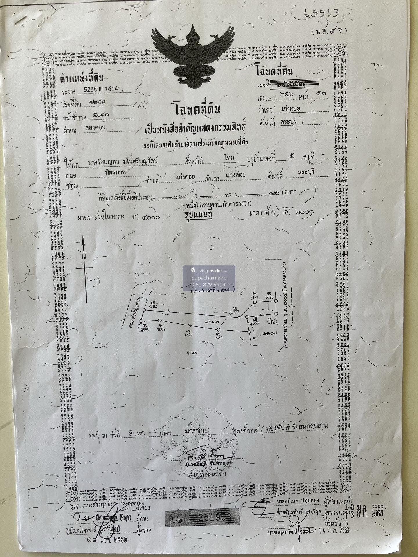Land for sale on Kaeng Khoi Road-Slang Phan (Muak Lek-Wang Muang), Kaeng Khoi District , Saraburi Province, near Song Khon School And 2 kilometers from Kaeng Khoi market, 17 kilometers away from the w
