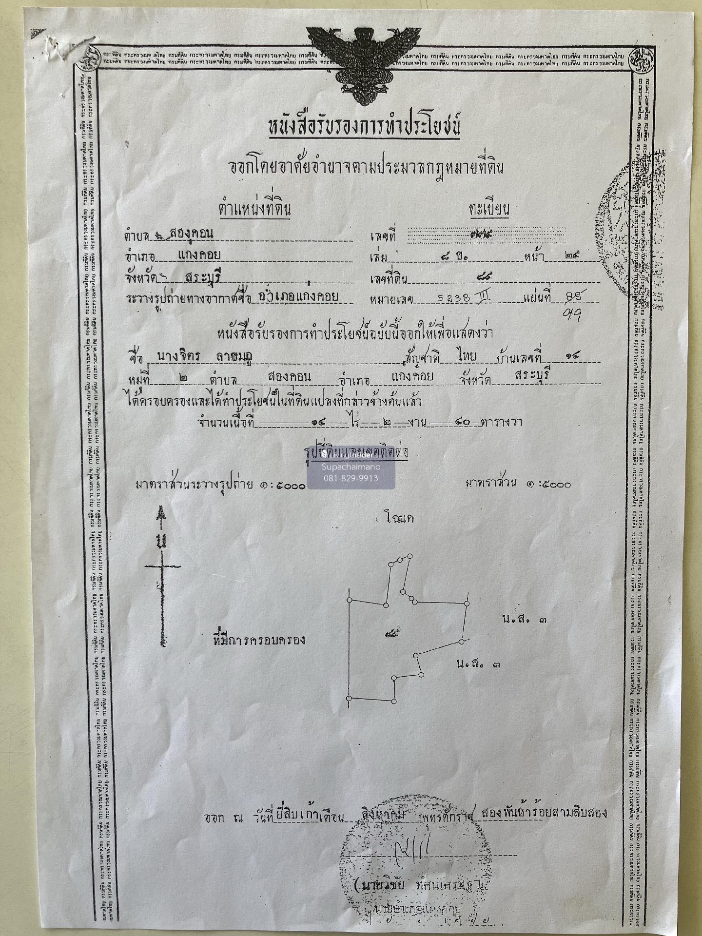 Land for sale on Kaeng Khoi Road-Slang Phan (Muak Lek-Wang Muang), Kaeng Khoi District , Saraburi Province, near Song Khon School And 2 kilometers from Kaeng Khoi market, 17 kilometers away from the wholesale market, Saraburi, suitable for housing estates, farming, farming, area 81 rai, 3 ngan 93 square wah The face is about 40 meters wide. Selling the most cheap 27,000,000 baht Interested, contact Contact number Line: NumTPR