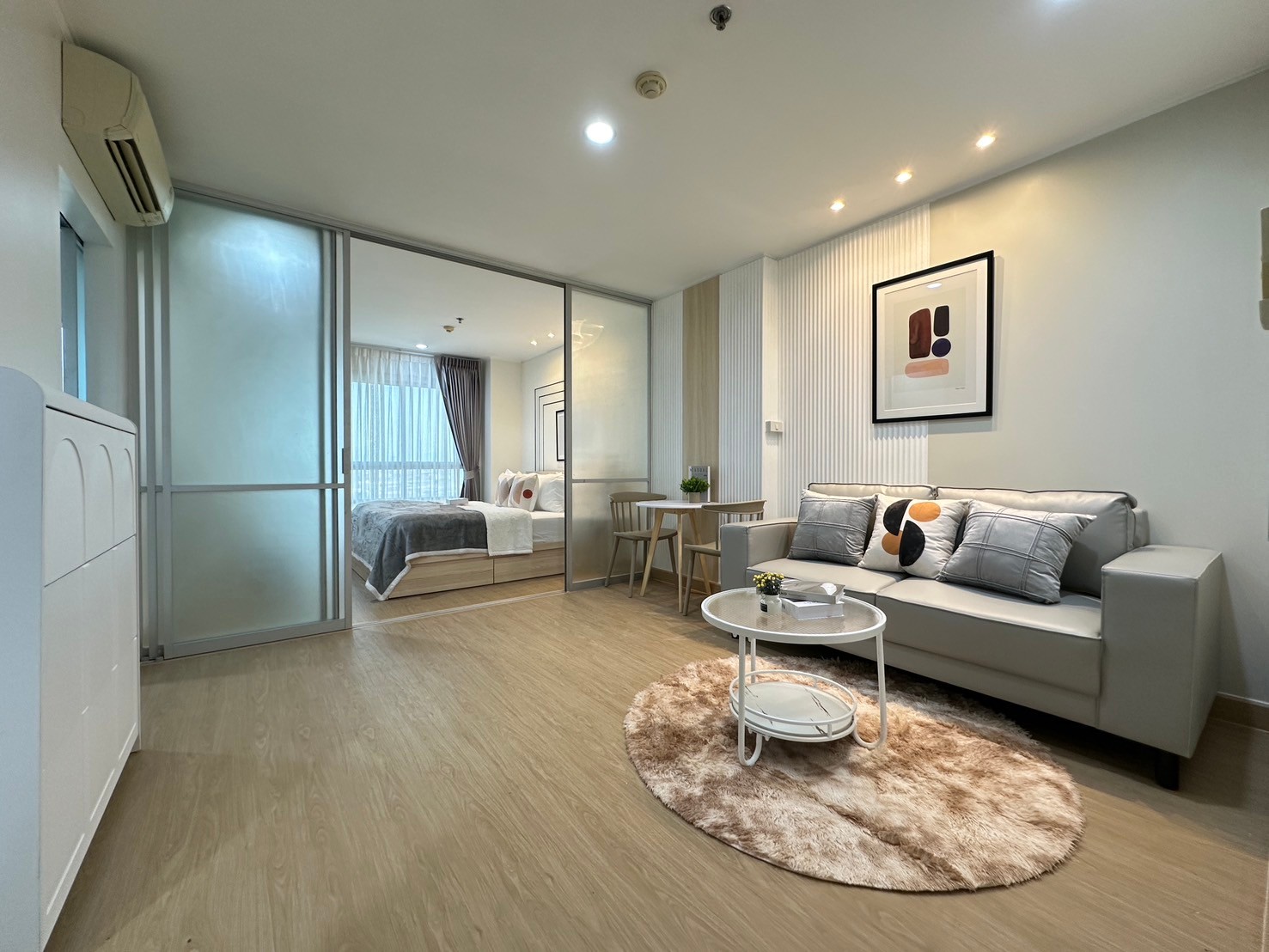 The high -class wide view room is only 5 minutes. #MRT Huai Khwang, good location ✓ Full credit, free down payment. No need to use cash ✓ 1 bedroom 32 sqm. There is a kitchen zone ✨ Huai Light (U Deli