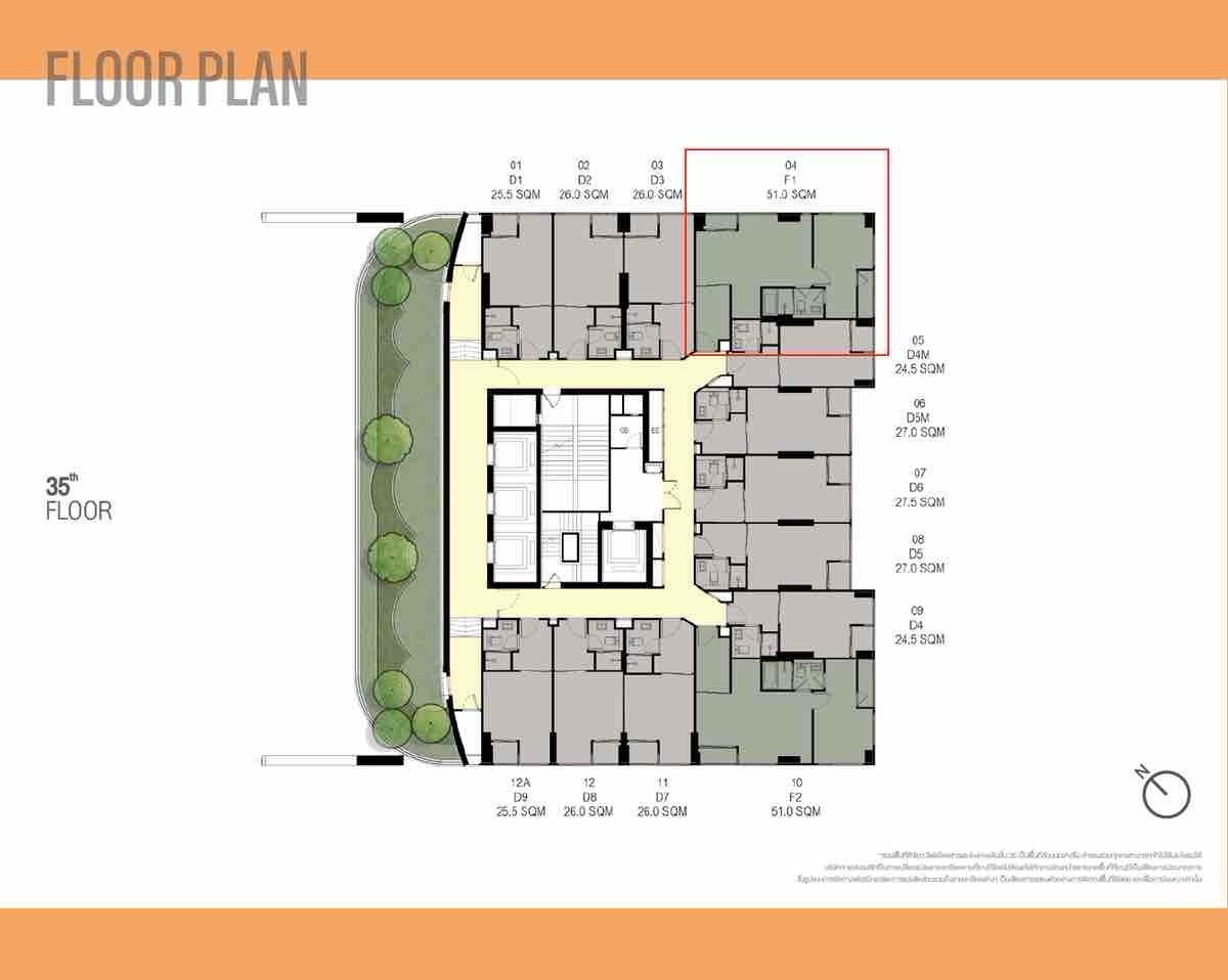 Room 3504 Floor 35, position 04 Room 2-Bed Hybrid, the same high floor as the garden The area below 51 sq.m., the top area 18.5 sq.m. Total area of ​​69.5 sq.m. Not hot, can sit all day Bedroom, balco