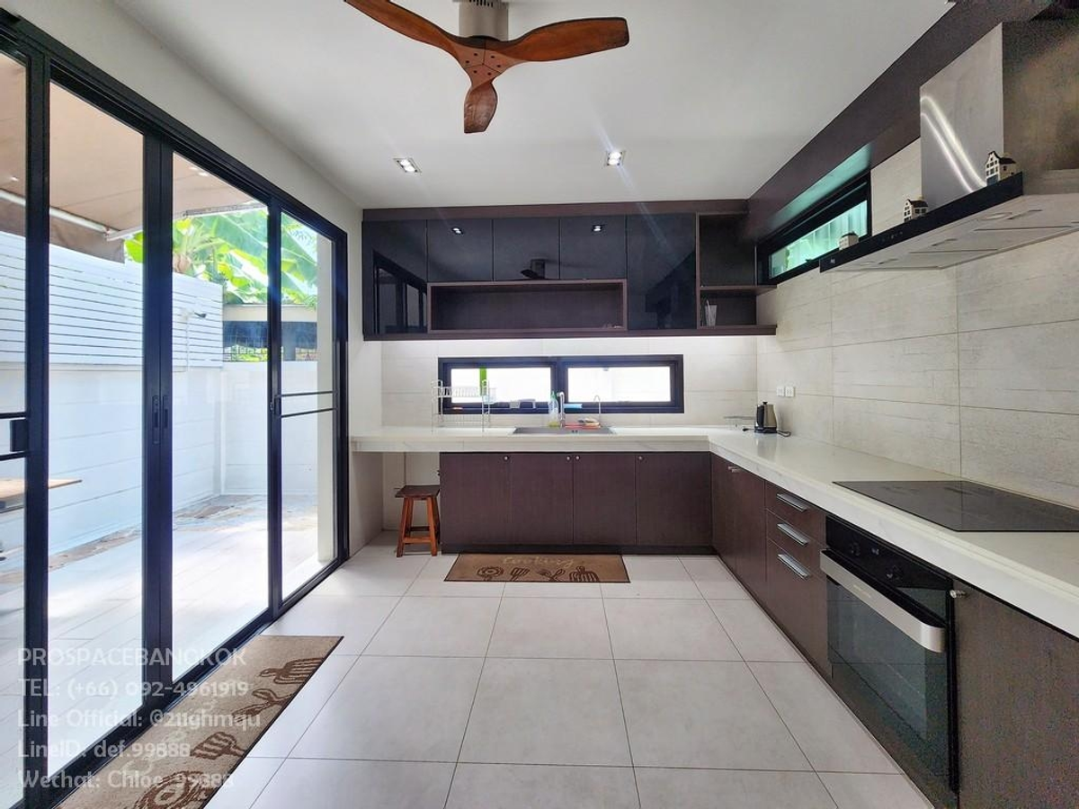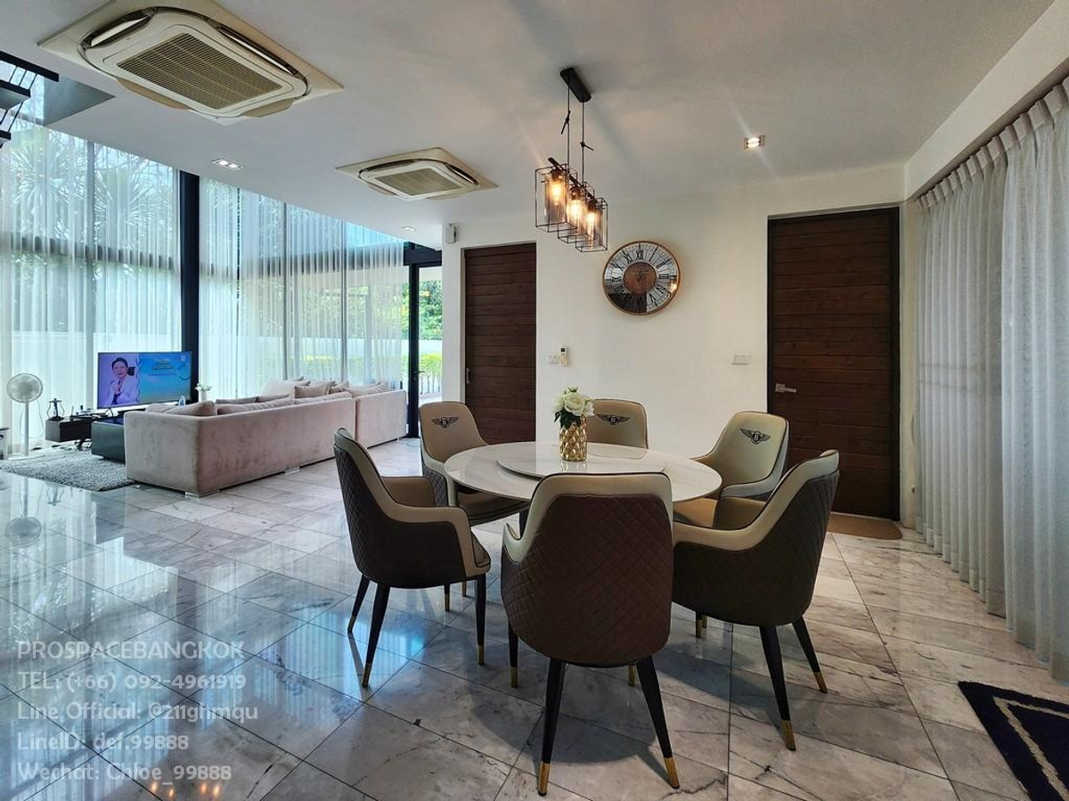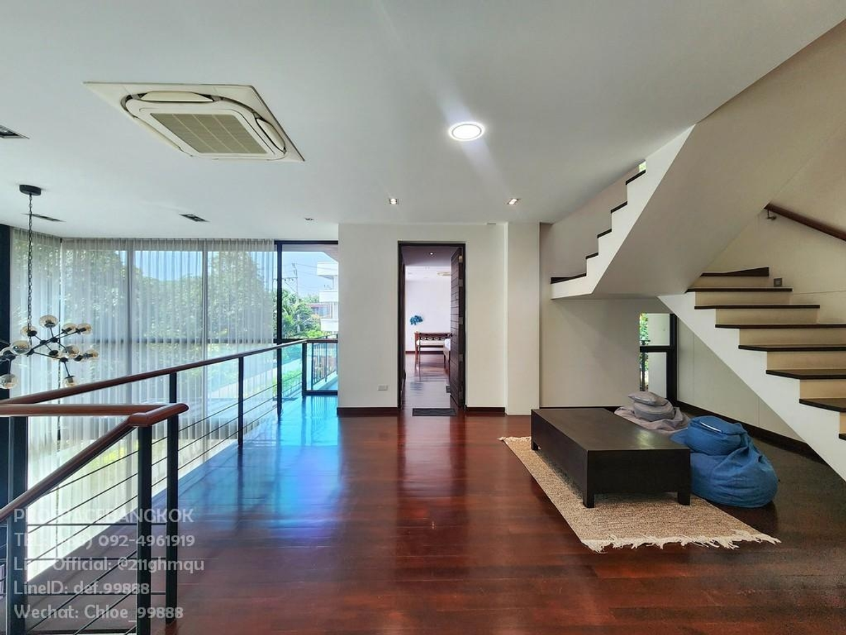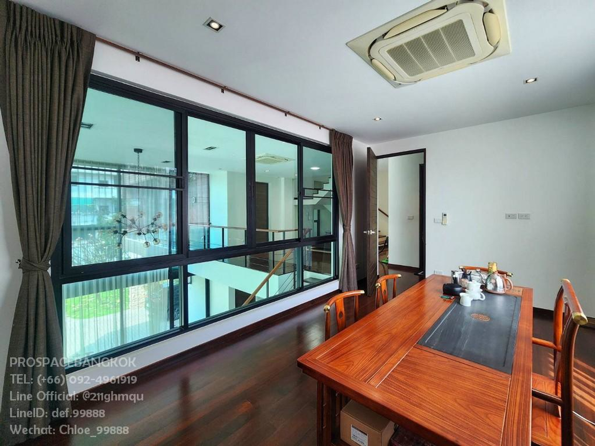 🏡 Modern 3-Story House with Roof terrace & Spacious Garden A luxurious and functional modern 3-story house with a roof terrace, designed for comfort and a contemporary lifestyle. ✨ Spacious & Elegant Living Area Step into an expansive living space with high ceilings and floor-to-ceiling glass walls, allowing natural light to flood in while offering breathtaking views of the surrounding greenery. • High ceilings enhance the open and airy atmosphere • Large L-shaped sofa, stylish chandelier, and an elegant entertainment setup • Soft, flowing sheer curtains provide privacy while maintaining a luxurious feel • Open-plan design seamlessly connects the living room, dining area, and kitchen—perfect for relaxation and entertaining guests 💎 Ideal for families seeking a spacious, functional, and sophisticated living environment. 📍 Good Location 🏙 Ratchada - Huai Khwang – Pracharatbampen Rd., A private and convenient urban retreat 📐 Land Size: 120 sq. wah (480 sq.m.) 🏠 Usable Area: Over 300 sq.m. of beautifully designed space 🛏️ Living Spaces • 4 Bedrooms – Spacious and comfortable for restful nights • 4 Bathrooms – Elegantly designed with high-quality fittings • Modern Kitchen – Fully equipped with premium appliances 💼 Work & Staff Quarters • 1 Private Office / Multipurpose Room – Ideal for remote work or a personal library • 1 Maid’s Room – With a separate utility area ✨ Designed for both luxury and practicality 🌿Special Features ✅ Glass and Imported Tiles 🔳 Ground floor glass is Safety Glass with Laminated Glass (Double Layer 5+5 mm) for enhanced safety. 🏗 Imported tiles, carefully selected for premium quality. ✅ Air Conditioning System ❄ Ceiling-concealed 4-way Daikin air conditioners – 7 units. ❄ Wall-mounted Daikin air conditioners – 2 units. ✅ Outdoor Area 🚗 Flooring from the entrance to the garage is Kenzai tiles, durable and weather-resistant. ✅ High-Quality Furniture 🪑 Indoor furniture is made from solid teak wood, ensuring elegance and durability. 📌Rent: 180,000 THB/m 💰 📌 For Sale: 59 Million THB 📞 Interested? Contact us: 📲 Call: Contact number 💬 Line Official: @211ghmqu 🆔 Line ID: def.99888 🏙 Highlights of Huai Khwang & Pracharat Bamphen Area 📍 Strategic Location – In the heart of Bangkok with excellent connectivity 🚇 Close to MRT Huai Khwang & MRT Sutthisan 🛣 Easy access to major roads: Ratchadaphisek, Rama 9, Lat Phrao 🏢 Near Business Districts: Rama 9 & Asoke 🛍 Lifestyle & Amenities • Shopping Malls: Central Rama 9, Esplanade Ratchada, The Street • Cafés, Restaurants & Entertainment Hubs • Markets & Night Bazaars: JODD FAIRS 📈 Growing Real Estate & Investment Potential 🏗 Home to Luxury Condos & Housing Projects 💰 Rising Land Prices & Rental Yields 🌏 Popular with Expats & Investors, especially Chinese buyers 🏥 Education & Healthcare Nearby 🎓 Schools: KIS International School, Regent's International School, SISB, Lycee French International School, Triam Udom Suksa Pattanakarn, University of the Thai Chamber of Commerce 🏥 Hospitals: Rama 9 Hospital, Piyavate Hospital, Bangkok Hospital 💼 Business & Career Opportunities 🏢 Office Towers in Rama 9 & Ratchada 📊 Presence of Multinational Companies & Startups ✨ Ratchada - Huai Khwang - Pracharat Bamphen is a golden location offering the perfect blend of lifestyle, convenience, and investment potential! ✨
