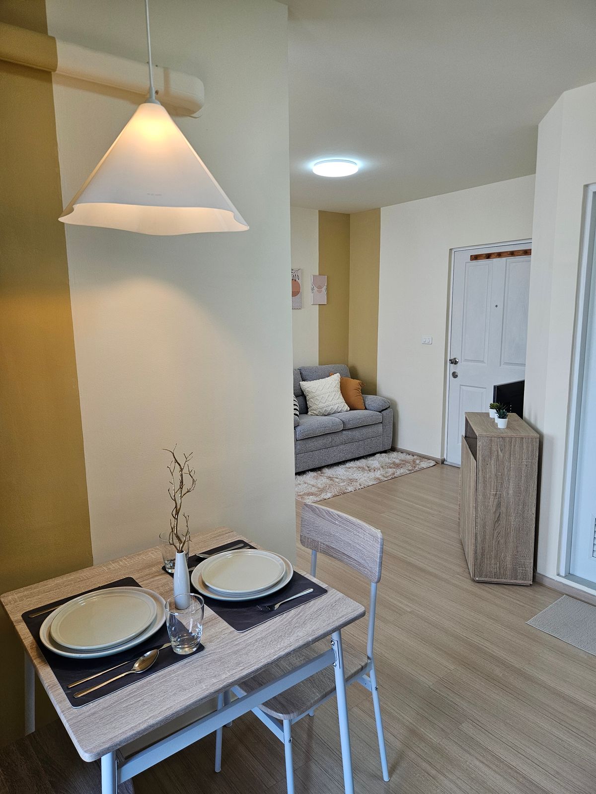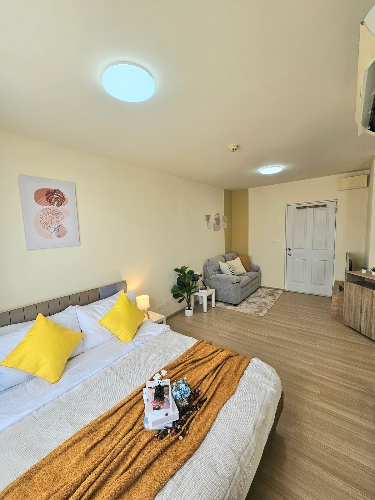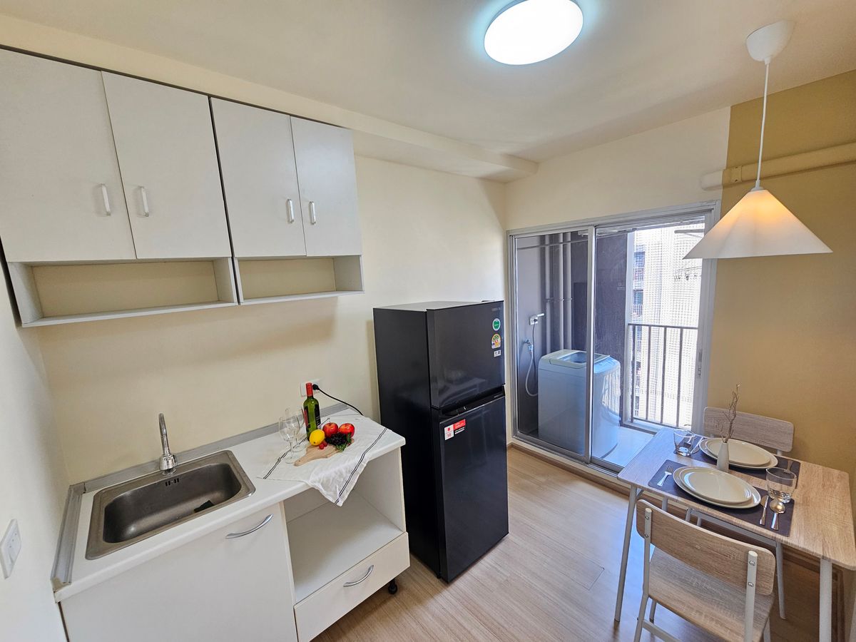 🔥 Urgent sale, plum, condo, Samakkhi 🔥 Private condo near Conmune Mall Oasis only 100 m 🔥 Condo is ready. Can drag the bag 🔥 Room size 26.39 sqm. Special only 1.19 deleted. ✨️ Studio room size 26.39 sqm. Building D, 8th floor, see the building and trees, shady rooms, not hot north. Contact number 🏠 Room details All new renovations 🌟 Furniture is complete -Bed -Close -Sofa -Table -Dining table and dining set