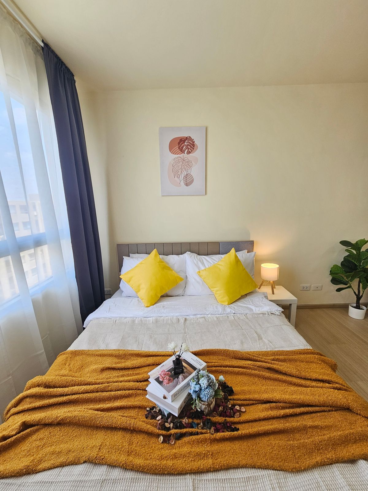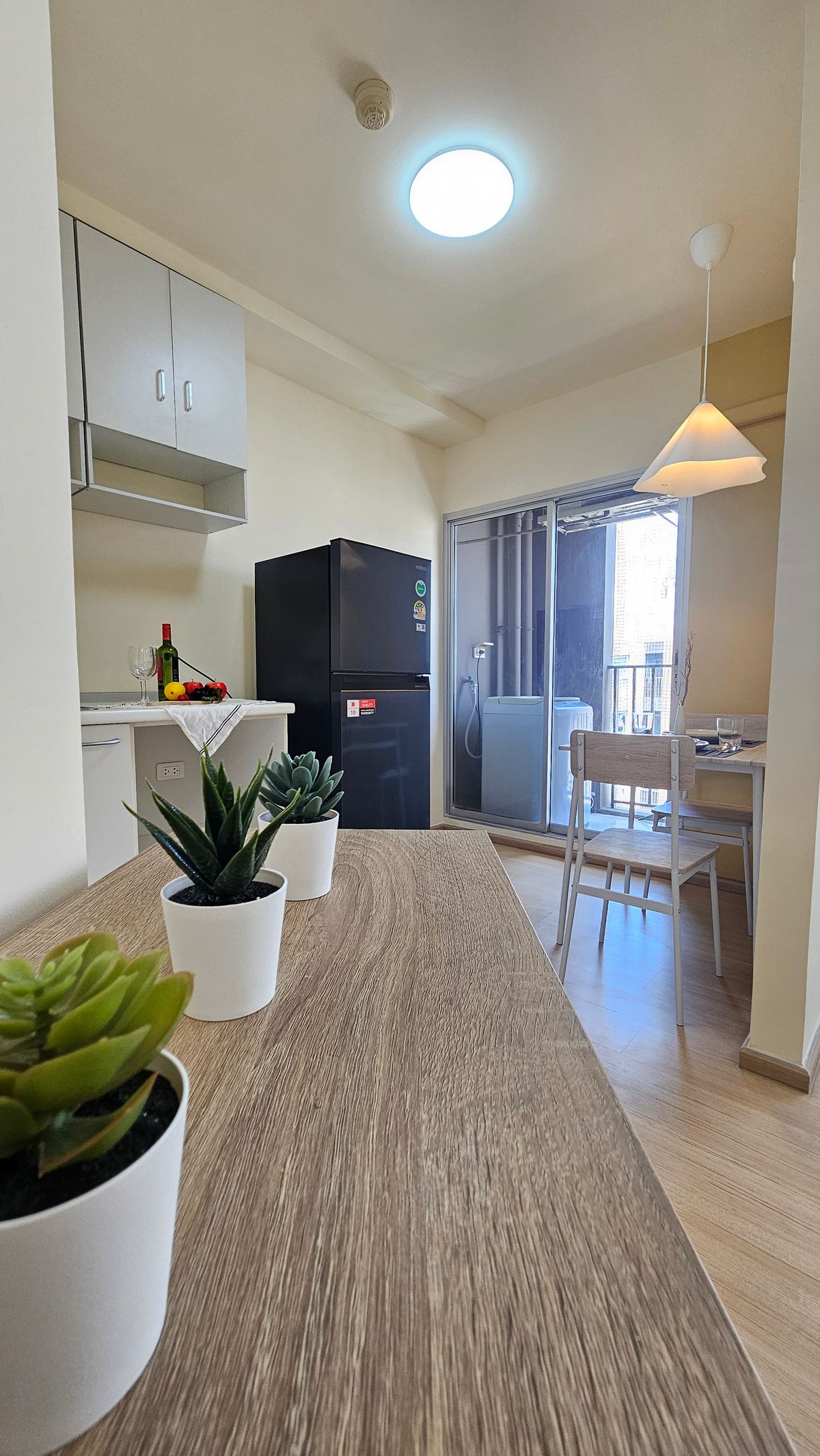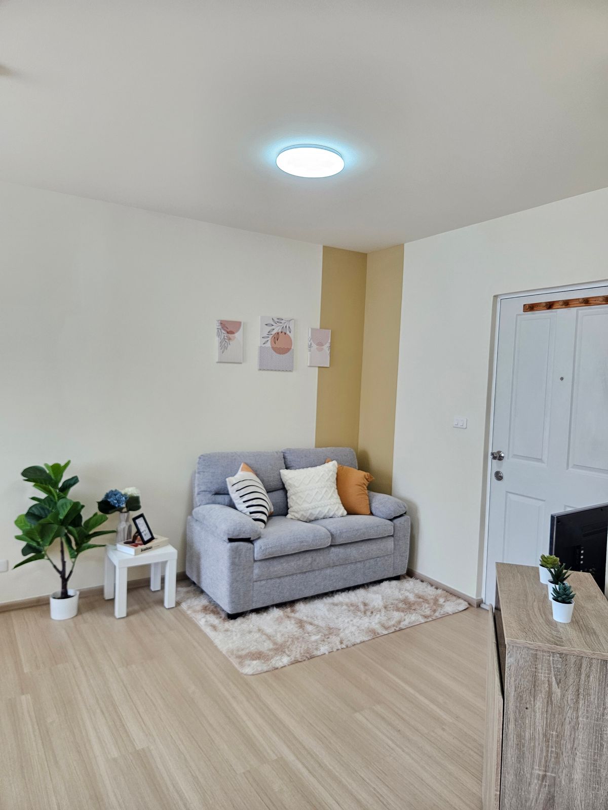 🔥 Urgent sale, plum, condo, Samakkhi 🔥 Private condo near Conmune Mall Oasis only 100 m 🔥 Condo is ready. Can drag the bag 🔥 Room size 26.39 sqm. Special only 1.19 deleted. ✨️ Studio room size 26.39 sqm. Building D, 8th floor, see the building and trees, shady rooms, not hot north. Contact number 🏠 Room details All new renovations 🌟 Furniture is complete -Bed -Close -Sofa -Table -Dining table and dining set