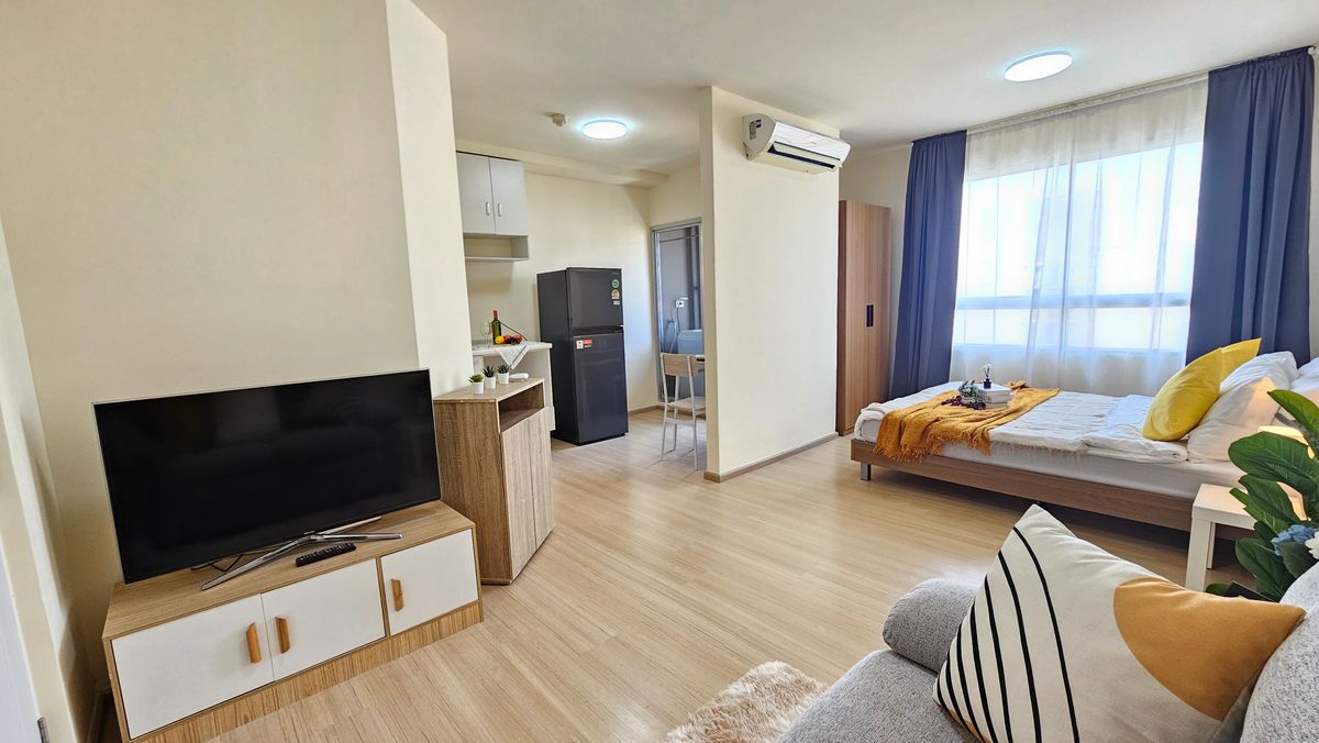 🔥 Urgent sale, plum, condo, Samakkhi 🔥 Private condo near Conmune Mall Oasis only 100 m 🔥 Condo is ready. Can drag the bag 🔥 Room size 26.39 sqm. Special only 1.19 deleted. ✨️ Studio room size 26.39 s