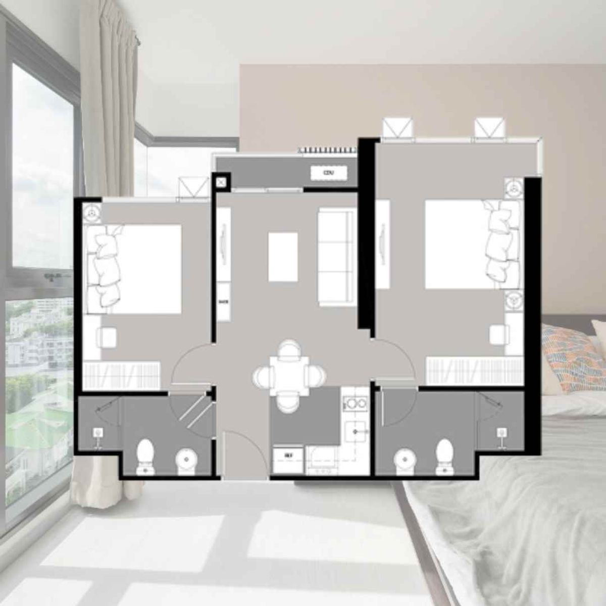 Rhythm Sukhumvit 36-38 2 bedrooms near BTS Thonglor Can access both Sukhumvit and Rama 4 -2 bedrooms, 2 bathrooms, price less than 10 million baht -Near the BTS Thonglor only 300 meters -Cheaper than