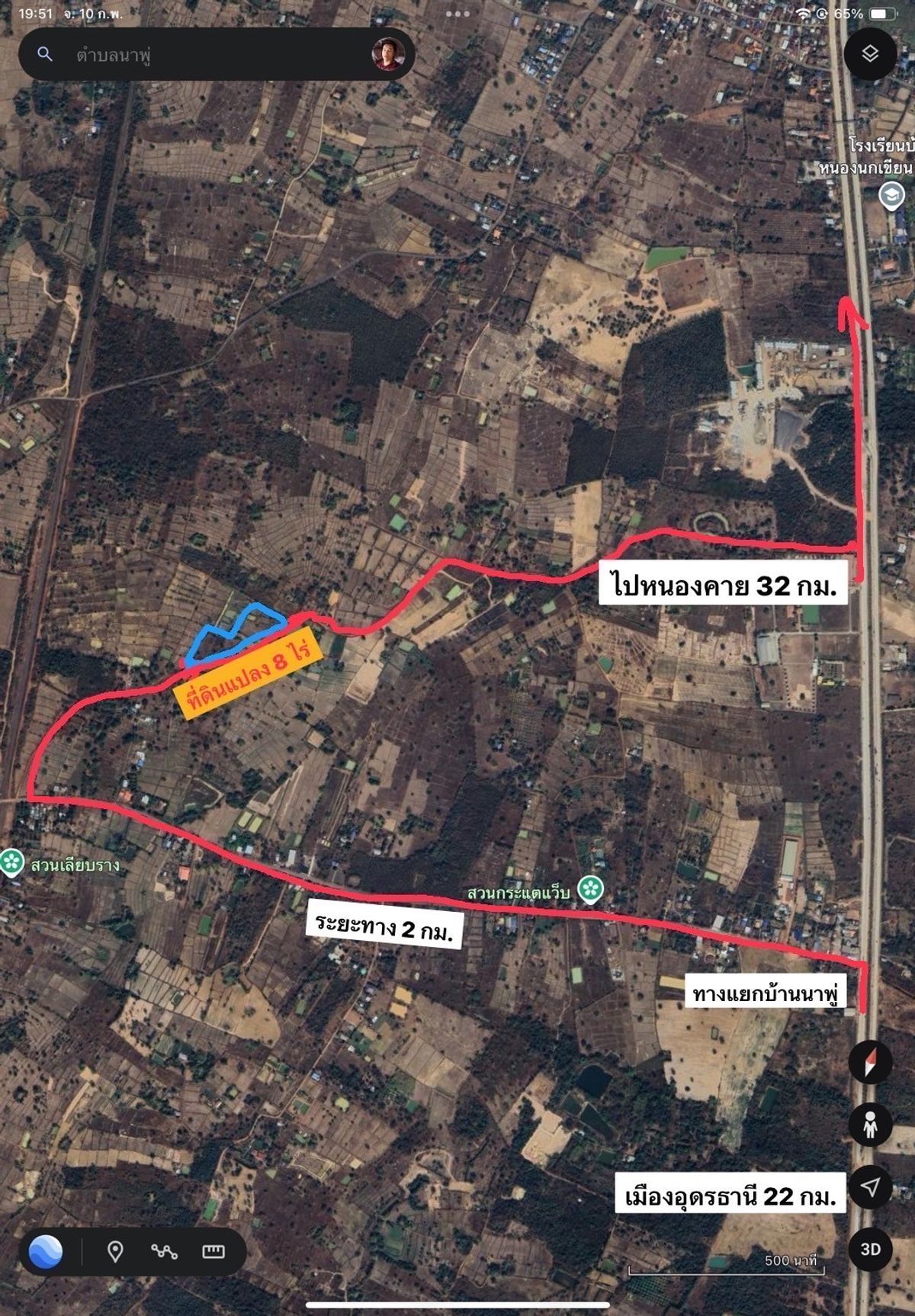 ☆ Urgent sale, 2 good locations, 2-title deeds, 4 rai, 2-rai, 8 rai, price 500,000 baht per rai ☆ Land in the middle of 2 provinces, Udon Thani-Nong Khai Away from the main road (Mittraphap Road), not