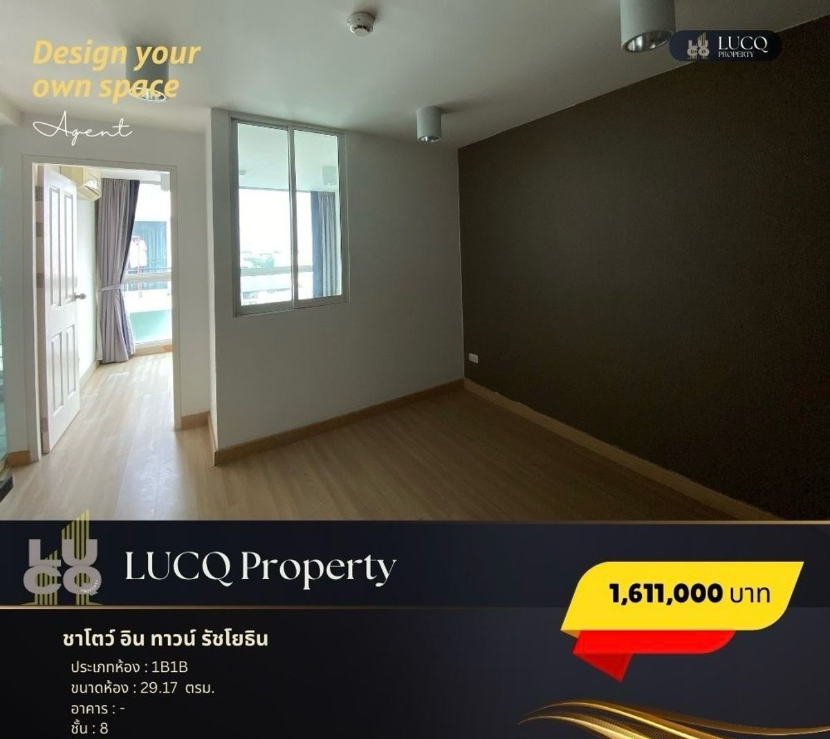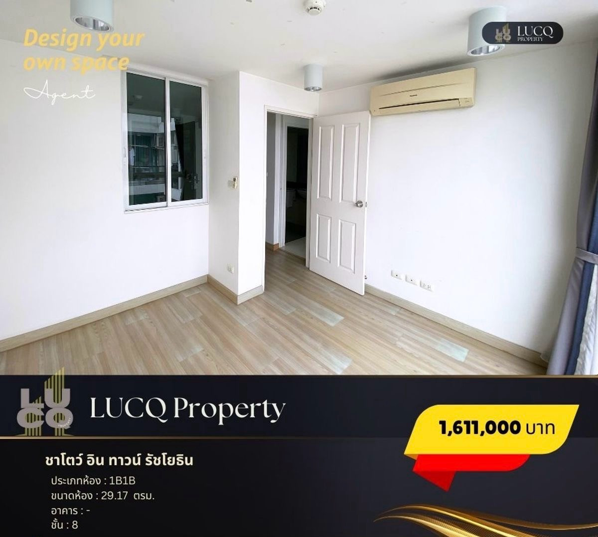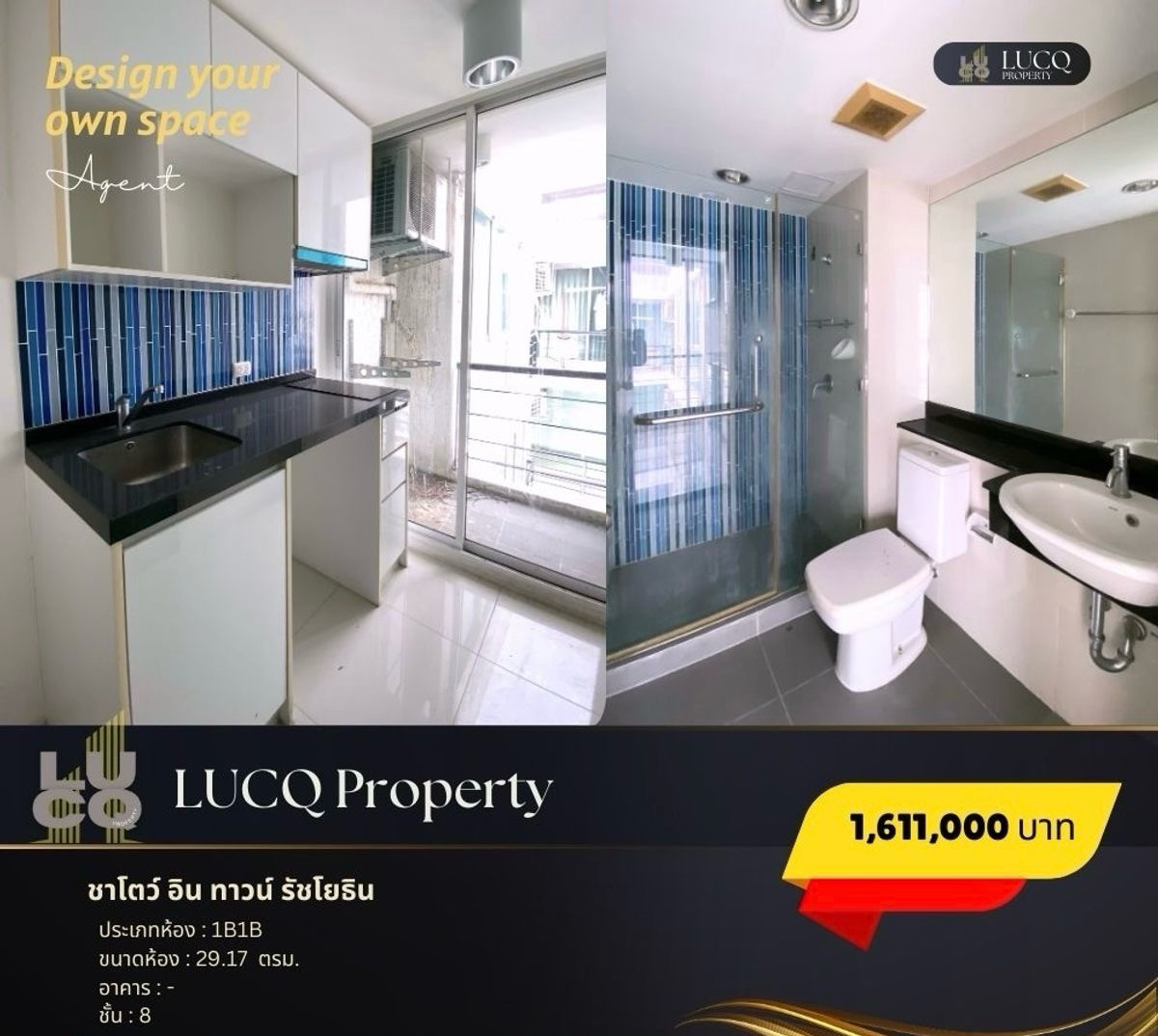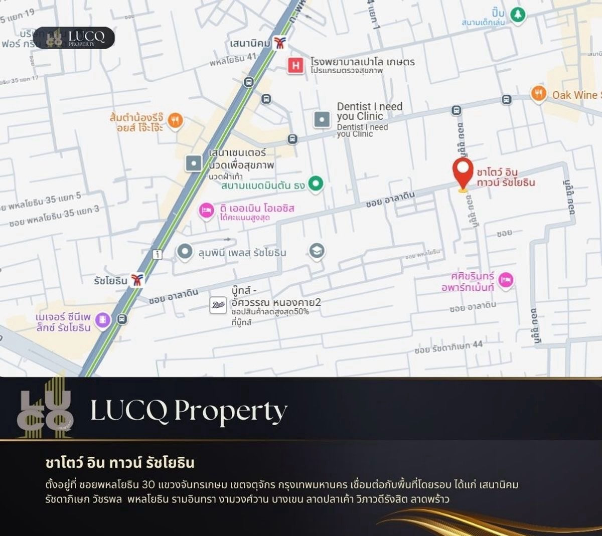 Cha Tow Inthara, Ratchayothin .. () 🌳 Located at Soi Phahonyothin 30, Chandrakasem Subdistrict, Chatuchak District, Bangkok Connected to the surrounding area, including Senanikhom, Ratchadaphisek Watcharapol, Phahonyothin, Ram Inthra Ngamwongwan, Bang Khen, Lat Pla Khao Vibhavadi Rangsit Ladprao 💰 Price 1,611,000 baht 29.17 sqm. (😎 The living space in the room is divided into 1 bedroom, 1 bathroom, the area in the middle for relaxation. And the kitchen that is separated in proportion 🌳 Project facilities - Swimming pool - Resting garden 📍 Nearby places - BTS BTS Station Ratchayothin Station (Ratchayothin BTS Station) Distance 1.1 kilometers (3 minutes) - Don Mueang International Airport, 11.0 km (16 minutes) Ladprao) distance 2.9 kilometers (6 minutes) - Lotus Ladprao, a distance of 2.7 kilometers (7 minutes) - The Mall Lifestore Ngamwongwan). Distance of 7.0 km (11 minutes) - Kasetsart University, a distance of 2.9 kilometers (7 minutes) - Phranakhon Rajabhat, a distance of 6.7 kilometers (10 minutes) - North Bangkok University (19 minutes)- Poolo Hospital Kaset Hospital) distance of 1.0 kilometers (3 minutes) - Vibhavadi Hospital, a distance of 3.0 kilometers (6 minutes) - Chulabhorn Research Institute, a distance of 9.0 km - Bhumibol ADUPITALDEALDEAL) 10.0 kilometers (16 minutes) - Chatuchak Park, a distance of 4.8 kilometers (9 minutes) ✳️ For more information Phone Contact number (LADA) or Contact number (YoQ) Line Official: @lucq.property See other rooms at https://www.livinginsider.com/public_profile