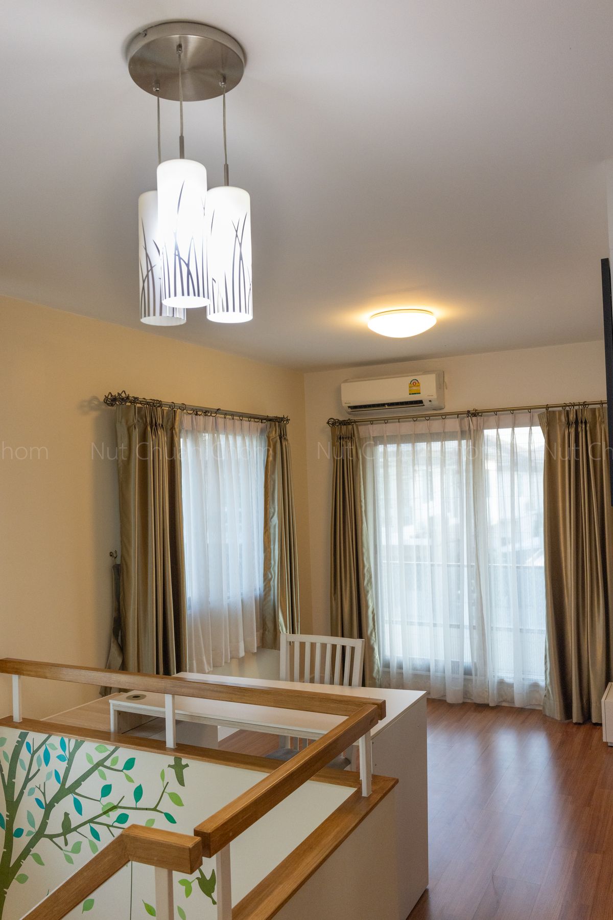 ⭐️ The largest Type in the project, ready to move in!! **VERY strong, no effect from earthquake!!** 🏠 72.8 sq.w. - 3 beds, 3 baths, 1 multifunctional room on upper floor, plus 1 additional room downstair for kids/elderly or the housekeeper. 🥅 Corner unit, convenient to access 🌻 The front of the house facing South, support wind flow ☘️ Quiet environment, sits in the opposite of the village public garden with a large private garden area 🌞 A quality project from "Land & House", one of the leading real estate companies listed on the stock exchange. https://www.lh.co.th/en Free !! Modern style built-in from SB Furniture: - Wardrobe/Storage cabinet downstair and inside every bedroom - Walk-in Closet in Master Bedroom - Shoe cabinet/glass storage cabinet high up to the ceiling - Desk+shelves in the multi-purpose room, upstairs - Cabinet+shelves in secondary bedroom+fitness room - Western style kitchen with marble top, built from top to bottom - Sink and accessories from Hafele - Coffee counter, Multipurpose counter, TV counter - 2-layer curtains - Pleated Insect Screen downstair - Chandelier at the Staircase and dinning room Free !! Electrical appliances - 5 Air conditioners - Electric stove with oven and kitchen hood from HAFELE - 2 TVs on the upstair & downstair - 10.5 kg. Front-loading washing machine from LG - 16 cubic refrigerator from SAMSUNG - Water heater - Water pump with tank - Garden sprinkler system with separate pump Free !! Home Safety System - L&H standard Security alarm system - Automatic sliding gate - Digital door lock to access the house from parking area - Safe in Master Bedroom's wardrobe Public Facility 🫡 24/7 Security guards on duty 🏀 Public gardens + Sport club Large swimming pool 12x25 meters Fitness room + Outdoor exercise zone Kids / ball room Sauna room, male & female separation 🚘 The road in the front zone is a tree tunnel, 15 meters wide Potential location. Connect to every destination with Sri Rat Expressway and the new Motorway Bang Yai-Kanchanaburi, MRT - Purple Line 💡 Buy with us today... 💗 Free !! Invitation to the village LINE groups / online marketplace. Increase your business opportunity and get supports directly from our nice neighbors from over 300 families. 💗 Free !! Key card for private access within the project 💗 Free !! Big Clean for the whole house before moving in 💗 Free !! Air conditioner cleaning + disinfection + ozone fumigation before moving in 🏦 Up to 4 people can apply for a joint loan, freelancers and LGBTQ+ couples are welcomed! 🌈 💕 Free consultation and financial support!! Call today !! Tel.: O 9 6 - 1 4 9 – 6 3 5 9 Line ID: maeodao