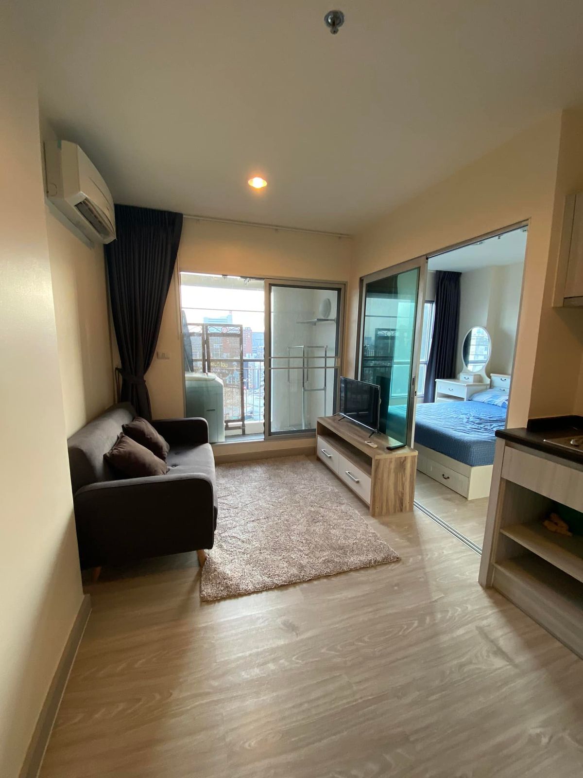 ASPIRE Ngamwongwan Condo Rental near Dhurakij Pundit University (8,500) 1 bedroom, 1 bathroom, 28 sqm. Type A (French kitchen) Building S 12A, the east is not hot in the morning Price 8,500 baht, 1 ye
