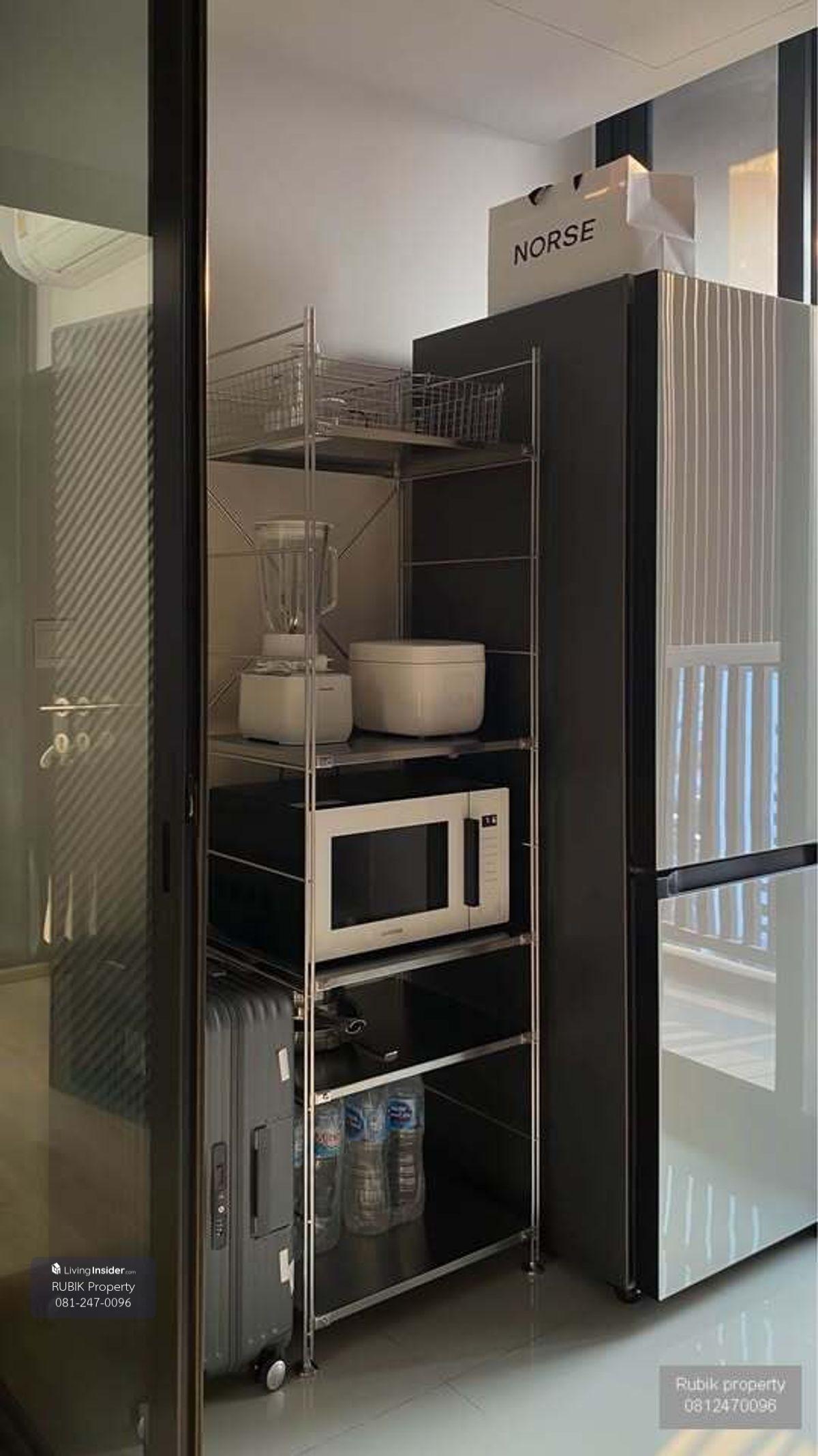 🏡 Luxury Condo for Sale - Oka Hauus Sukhumvit 36 ​​(RB648) Living Room with Closed Kitchen | 🚿 1 Bathroom 🌿 Private Balcony | 1 Parking Slot Bespoke Refrigear (11.9Q) 🧊 ✅ Samsung Microwave 🍽 ✅ Tablet