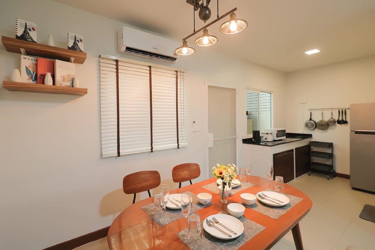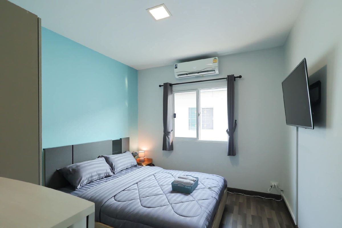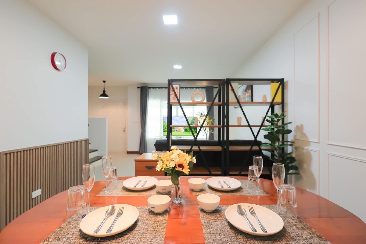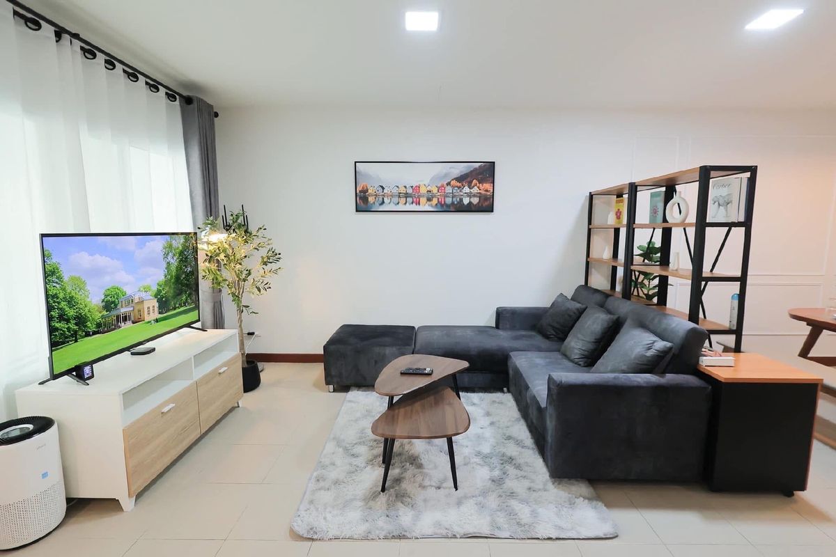For rent, large townhouse, 2 parking spaces, Mae Hia 🏡 ✈️ Near Chiang Mai International Airport, only 7 minutes ✈️ Decorated in a modern loft style, minimalist, luxurious, modern ✨ 📍Location: Pruksa Ville 75 Ratchaphruek (convenient transportation) Fully furnished, electrical appliances, ready to move in, air-conditioned in every room Near many amenities such as Department stores, international schools, restaurants, fresh markets Rental fee 22,000 baht/month (minimum rental contract 1 year) 📡 Free Internet Wifi speed 500/500 Mbps 📡 (‼️Note: No pets of any kind ‼️) 🏡 Details of a large townhouse with 2 parking spaces 🏡 Usable area 118 square meters -3 bedrooms -1 hall, living room -1 dining room -1 indoor kitchen (electric stove) -1 outdoor kitchen (gas stove) and hall behind the house -1 front yard relaxation area -2 bathrooms -2 parking spaces (indoor) ✨ Electrical appliances & furniture details -55-inch Smart TV with TV shelf -L-shaped sofa set with sofa table -Bed sheet set, pillows, blankets, bedside lamps in every room -6-foot bed set with mattress Dressing table, wardrobe - 5-foot bed set with mattress, wardrobe - 3.5-foot bed set with mattress, wardrobe - Dining table set with chairs - 4 air conditioners - 2-door large refrigerator - Top-loading washing machine - Plates, cups, spoons, forks, glasses, wine glasses - Electric stove, microwave, toaster, electric kettle - Gas stove with range hood - Water pump & large water tank - Shelves - Water heater - Front yard table and chairs ✅ Project facilities ✅ - 24-hour security guards - CCTV camera system around the village - Public park within the project 📍Nearby places📍 - Central Airport Chiang Mai - Chiang Mai International Airport - Ambassador Bilingual Academy - American Pacific International School - British Meriton International School - Sarasas Witaed Lanna School - Big C Supercenter Hang Dong 1 (Mae Hia) - Makro Hang Dong - Lotus Chiang Mai Hang Dong - GO Wholesale Chiang Mai - Warun Market, Mani Market - Nim City Daily Project - Chiang Mai Hospital Near Doctor 🔸For more information, please contact🔸 ——-—————————————— ☎️Tel. Contact number(Ben) 📲Line ID: Contact number 📲WhatsApp: Contact number 📲WeChat ID: ben Contact number
