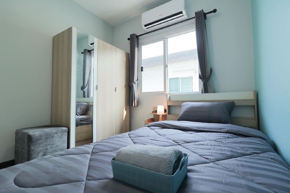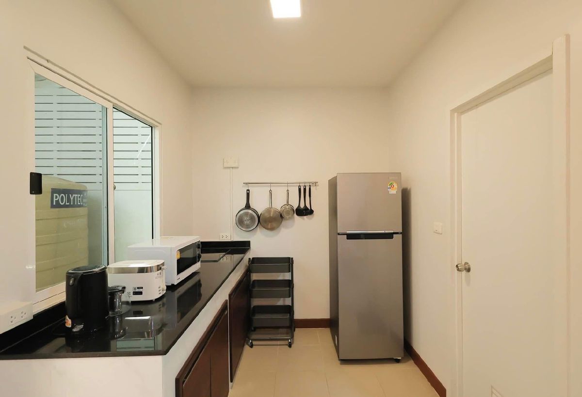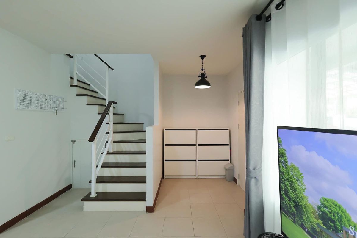 For rent, large townhouse, 2 parking spaces, Mae Hia 🏡 ✈️ Near Chiang Mai International Airport, only 7 minutes ✈️ Decorated in a modern loft style, minimalist, luxurious, modern ✨ 📍Location: Pruksa Ville 75 Ratchaphruek (convenient transportation) Fully furnished, electrical appliances, ready to move in, air-conditioned in every room Near many amenities such as Department stores, international schools, restaurants, fresh markets Rental fee 22,000 baht/month (minimum rental contract 1 year) 📡 Free Internet Wifi speed 500/500 Mbps 📡 (‼️Note: No pets of any kind ‼️) 🏡 Details of a large townhouse with 2 parking spaces 🏡 Usable area 118 square meters -3 bedrooms -1 hall, living room -1 dining room -1 indoor kitchen (electric stove) -1 outdoor kitchen (gas stove) and hall behind the house -1 front yard relaxation area -2 bathrooms -2 parking spaces (indoor) ✨ Electrical appliances & furniture details -55-inch Smart TV with TV shelf -L-shaped sofa set with sofa table -Bed sheet set, pillows, blankets, bedside lamps in every room -6-foot bed set with mattress Dressing table, wardrobe - 5-foot bed set with mattress, wardrobe - 3.5-foot bed set with mattress, wardrobe - Dining table set with chairs - 4 air conditioners - 2-door large refrigerator - Top-loading washing machine - Plates, cups, spoons, forks, glasses, wine glasses - Electric stove, microwave, toaster, electric kettle - Gas stove with range hood - Water pump & large water tank - Shelves - Water heater - Front yard table and chairs ✅ Project facilities ✅ - 24-hour security guards - CCTV camera system around the village - Public park within the project 📍Nearby places📍 - Central Airport Chiang Mai - Chiang Mai International Airport - Ambassador Bilingual Academy - American Pacific International School - British Meriton International School - Sarasas Witaed Lanna School - Big C Supercenter Hang Dong 1 (Mae Hia) - Makro Hang Dong - Lotus Chiang Mai Hang Dong - GO Wholesale Chiang Mai - Warun Market, Mani Market - Nim City Daily Project - Chiang Mai Hospital Near Doctor 🔸For more information, please contact🔸 ——-—————————————— ☎️Tel. Contact number(Ben) 📲Line ID: Contact number 📲WhatsApp: Contact number 📲WeChat ID: ben Contact number