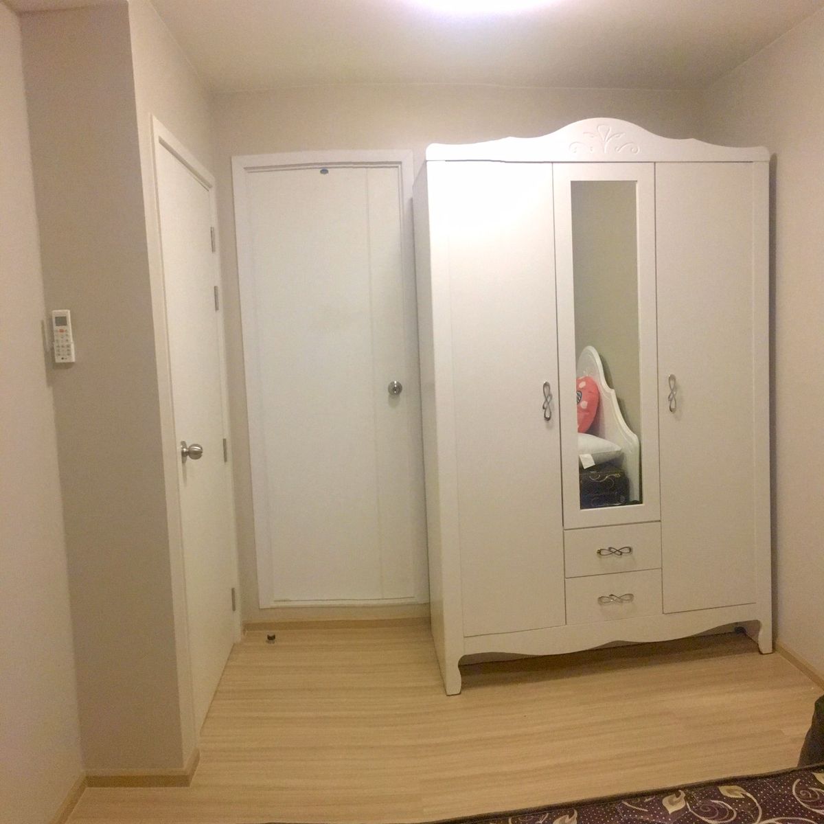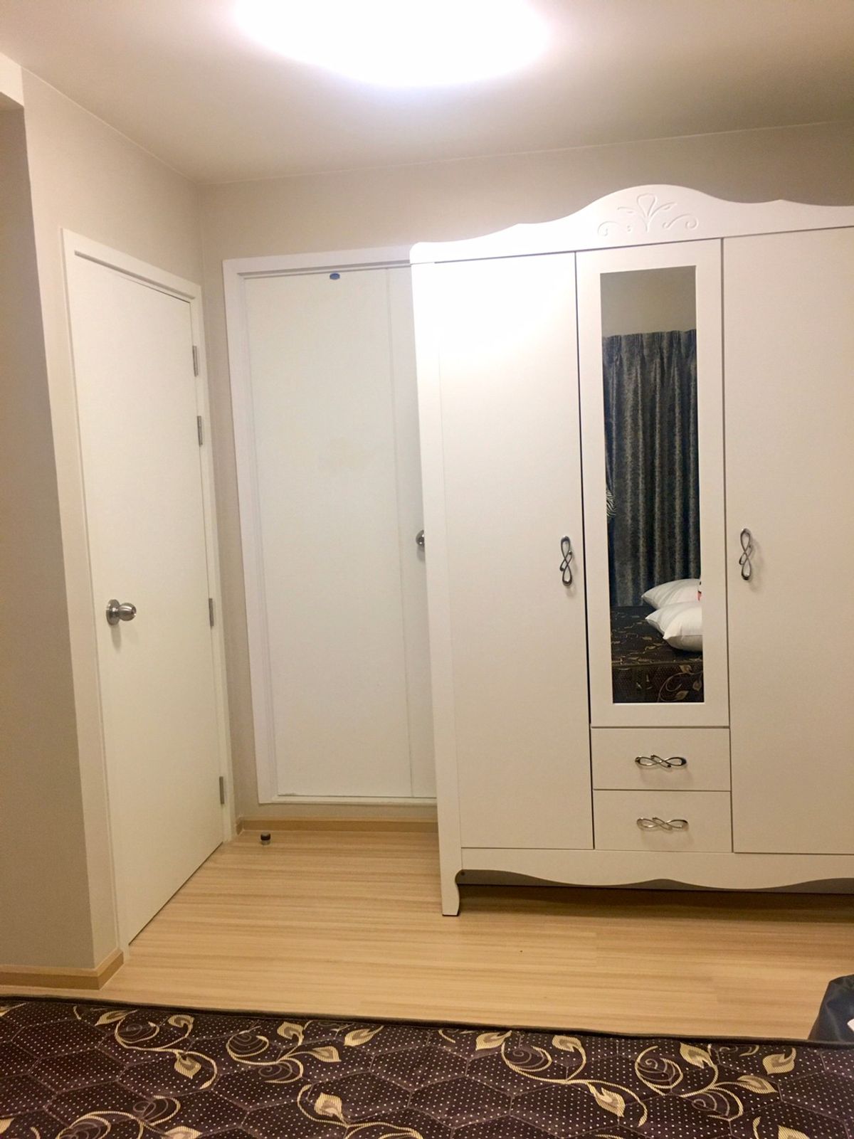 Rent at Plum Condo Chaengwattana Station Phase 3 Building A, 3rd floor, size 26 sqm. There is 1 bedroom, 1 bathroom Sitting zone Kitchen counter Balcony in the room ** Furniture Bed+mattress+wardrobe+