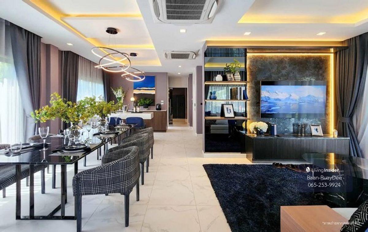 Contact: Khun Nok Project sales department Line Add: @GGP824 Tel. Contact number Project owner SC Asset Corporation Public Company Limited Details There are 157 unit frames Project area 41-1-77.9 Rai Selling price 25.9 million Ready to stay - Area 313 sqm. Bedroom - 5 bathrooms - 2 living rooms - 3 parking spaces - 2 resting rooms - 1 kitchen - 1 housekeeping room - Smart application system Resting area - CCTV - Development area - Club - Swimming pool - Automatic access system - Playground - Central value 53/Sq.